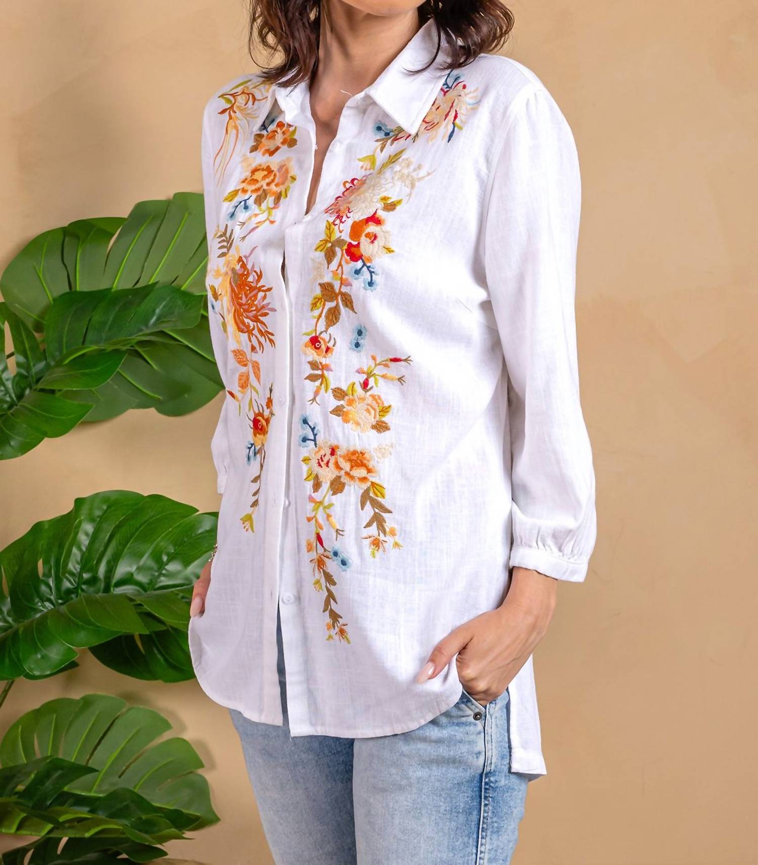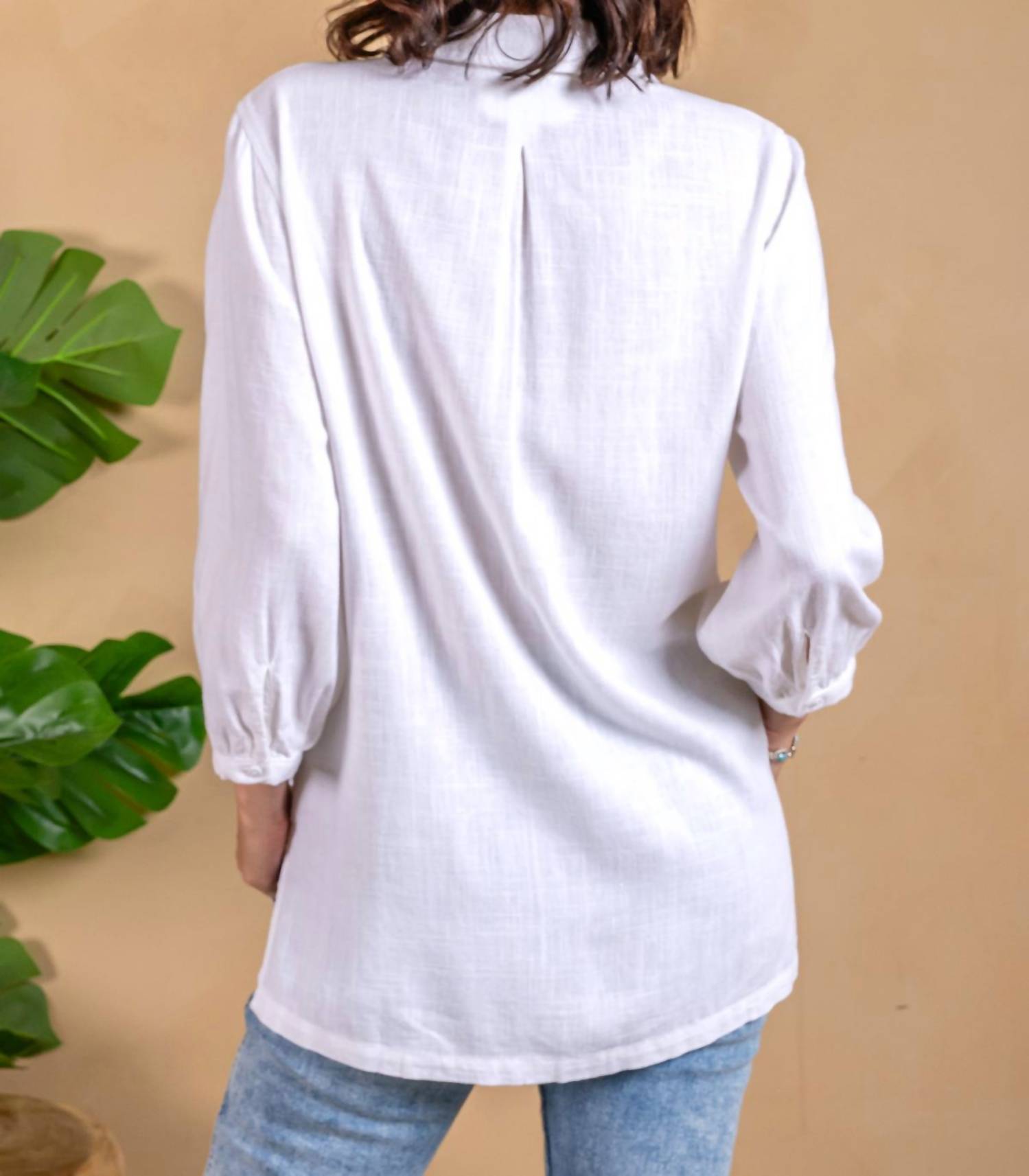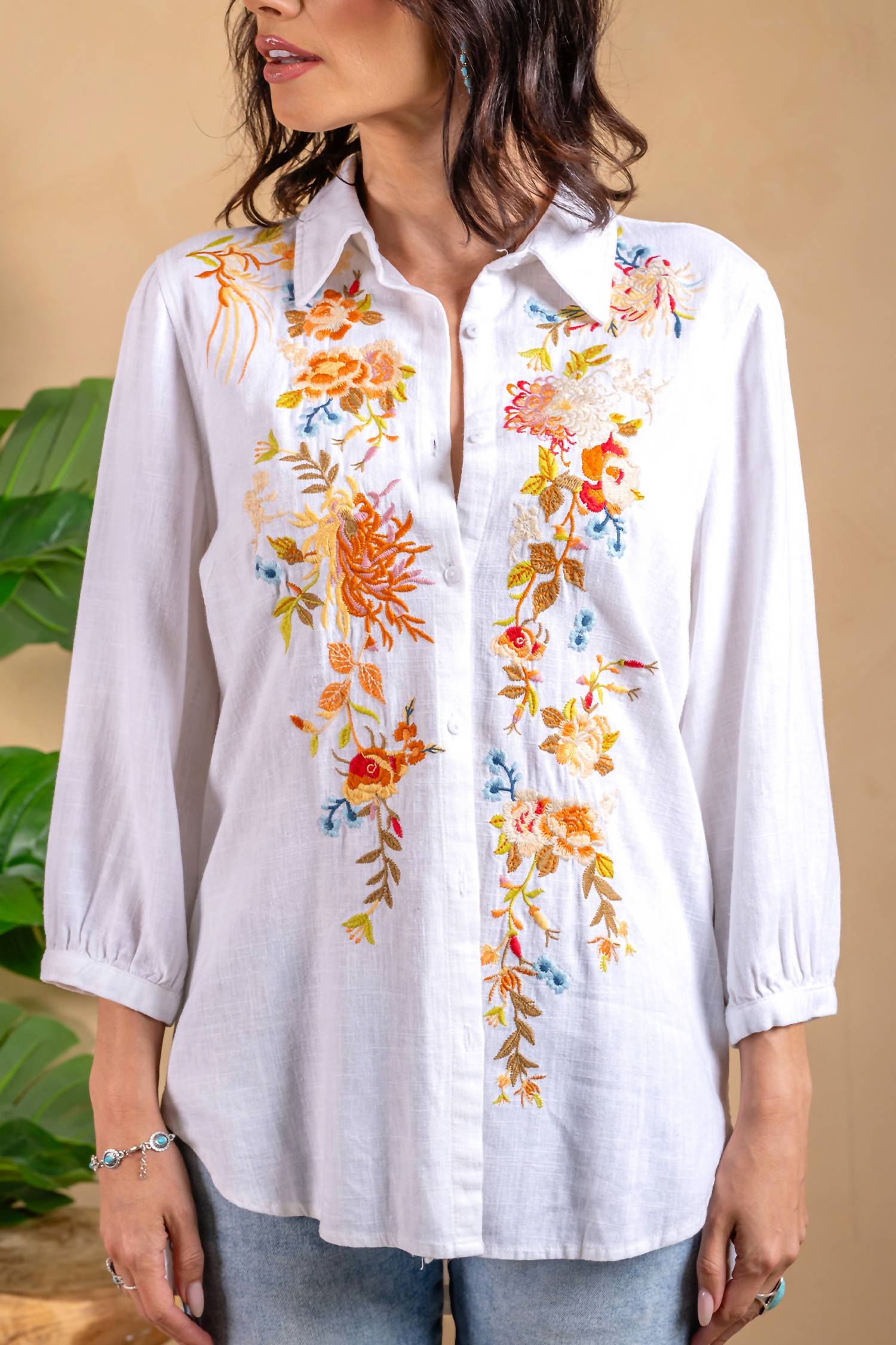 Paparazzi - Embroidered Linen 3/4 Sleeve Button Front Shirt