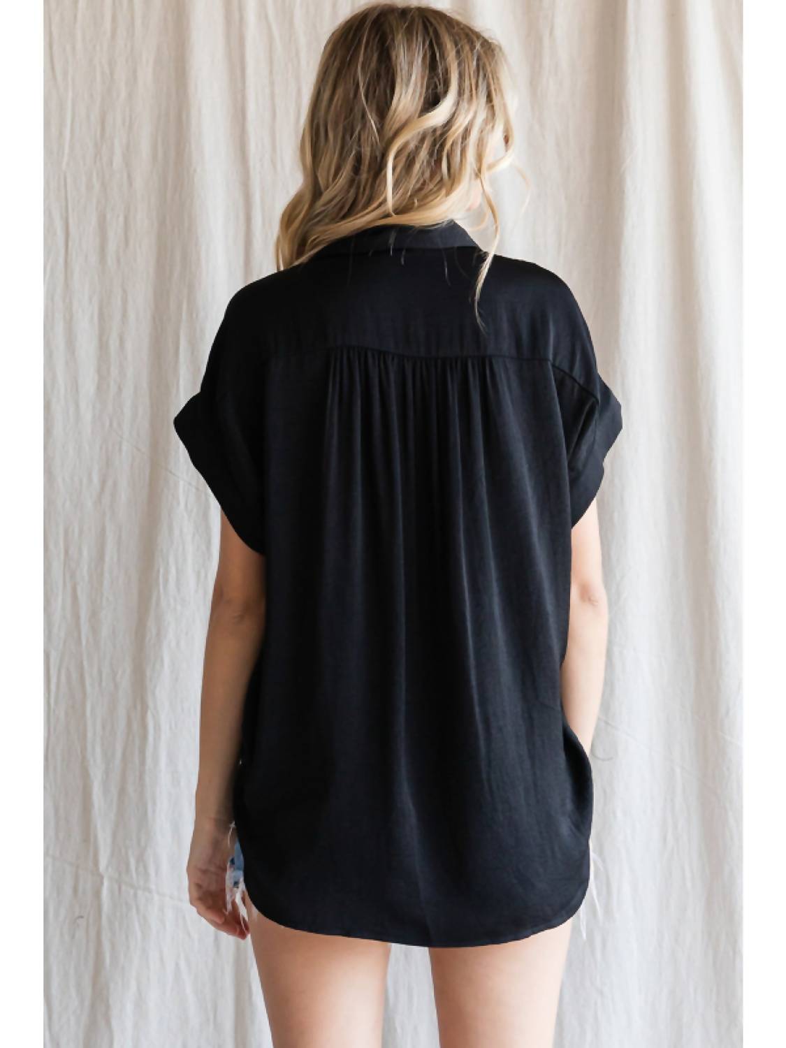 A classic button down shirt that will never go out of style. This top features cuffed short sleeves, ruched shoulders, and a back shirring detail, ensuring a flattering fit. Crafted from 100% polyester, it provides a lightweight and non-sheer finish, ideal for versatile styling. Closure is achieved via a button front, offering classic simplicity for everyday wear.