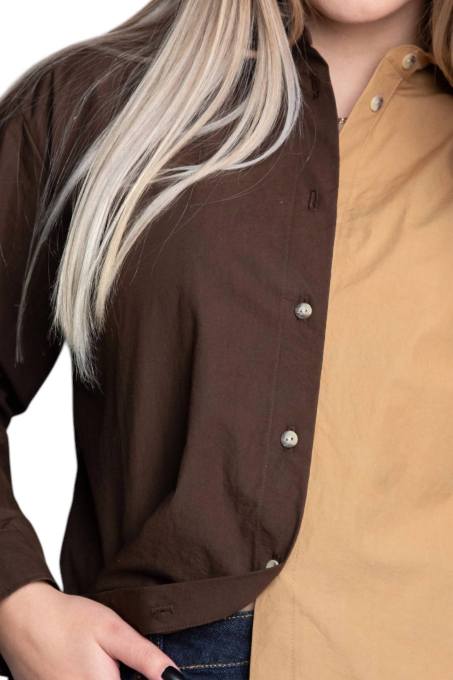 A classic button down shirt that will never go out of style. Introducing the Duo Pop Button Down Shirt by DONNI., a perfect blend of fun and sophistication. Designed for women, this long sleeve shirt in vibrant hue is made from 100% cotton and features a classic collar. With a solid pattern and button closure, it's versatile for any spring dinner party or Thanksgiving occasion. Embrace the 90s fashion trend with this stylish addition to your wardrobe.