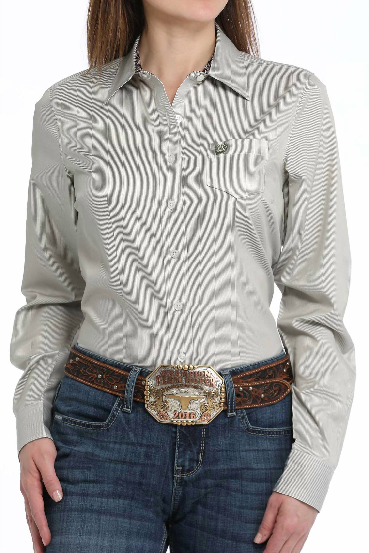 This button down shirt is comfortable yet polished. Introducing the CINCH Women's Tencel Button Down Shirt in a sophisticated olive hue, perfect for holiday parties. This shirt is crafted from a lightweight, moisture-wicking stretch fabric composed of 97% polyester and 3% spandex, ensuring increased range of motion and comfort. Designed with a classic collar neckline, long sleeves, and a practical button closure, this piece also features a subtle solid pattern and pockets for added utility. Seasonally ideal for spring events, this shirt combines functionality with a refined style.