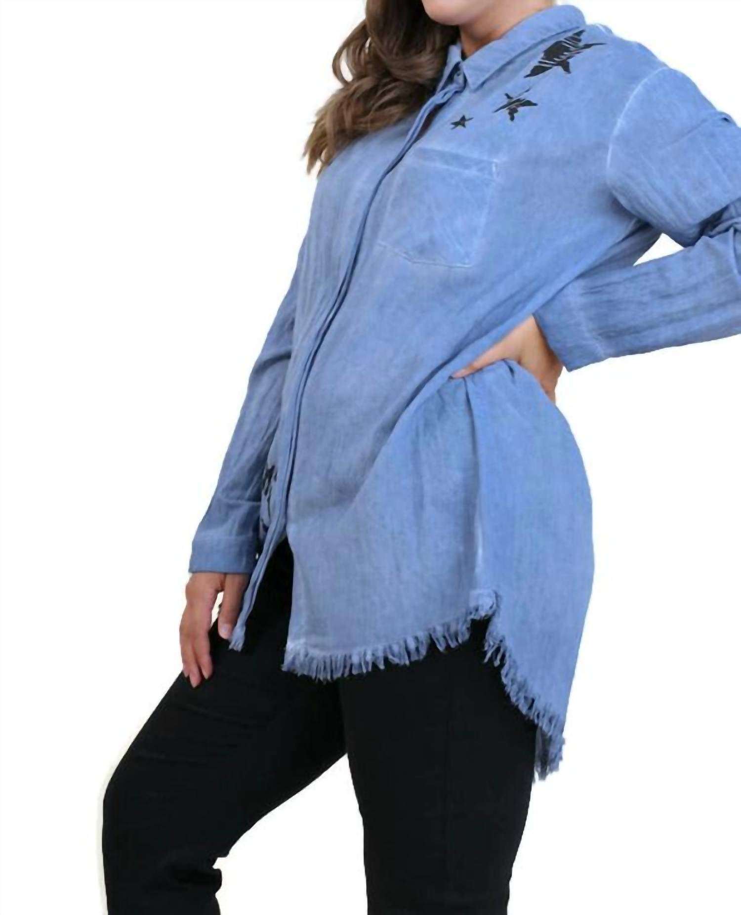 This button down shirt is comfortable yet polished. Ideal piece for travel and everyday streetwear. Long sleeve shirt features a classic collar, roll tab convertible sleeves, and a button closure, along with a high-low frayed hem for added flair. Made from 65% Cotton and 35% Polyester. Designed with a flattering length of 30 inches and a convenient front pocket. Care for this stylish piece by hand washing to maintain its charm and durability.
