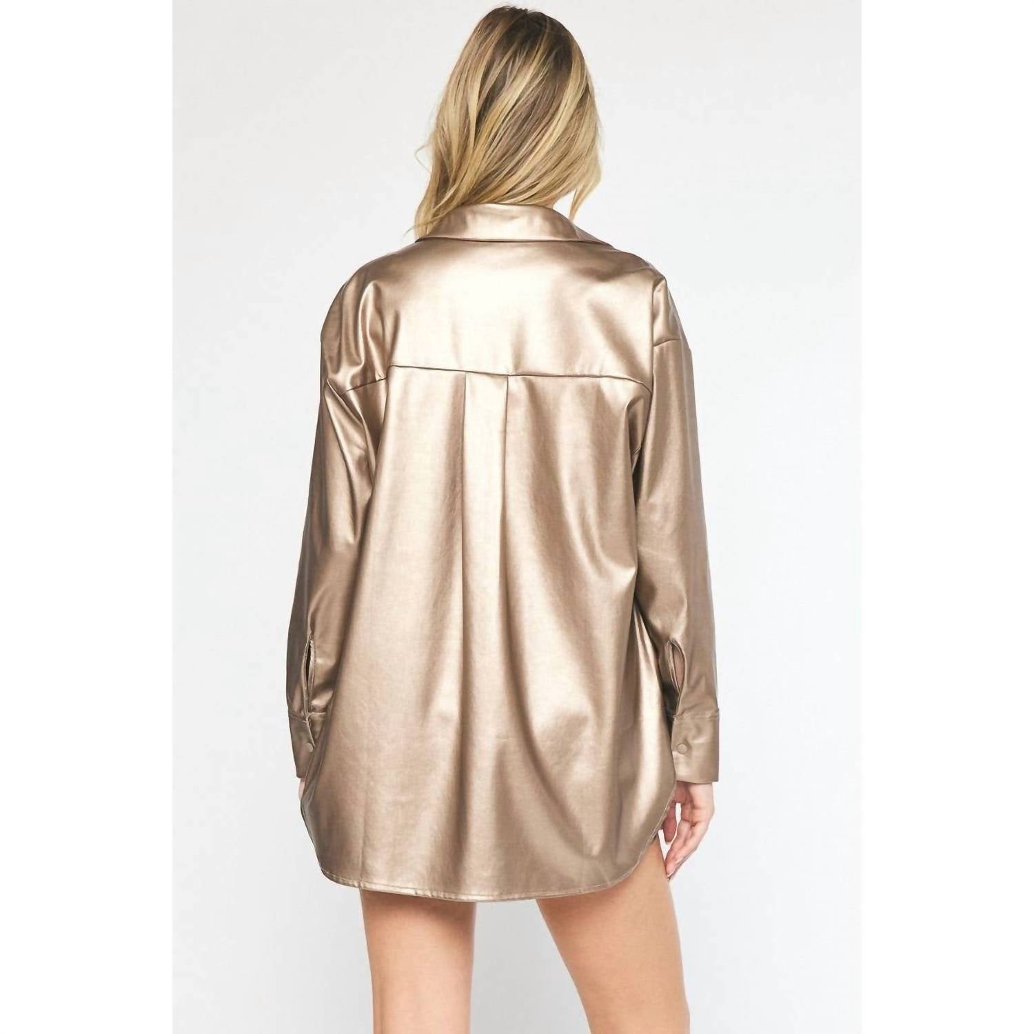This button down shirt is comfortable yet polished. Introducing the Gold Button Up by Entro, a chic addition to your spring wardrobe perfect for holiday parties. This oversized top features long sleeves and a stylish collar with practical pockets for added convenience. The solid gold hue exudes elegance, while the button closure offers a classic look. Ideal for versatile styling, this garment is a must-have for any fashion-forward wardrobe.