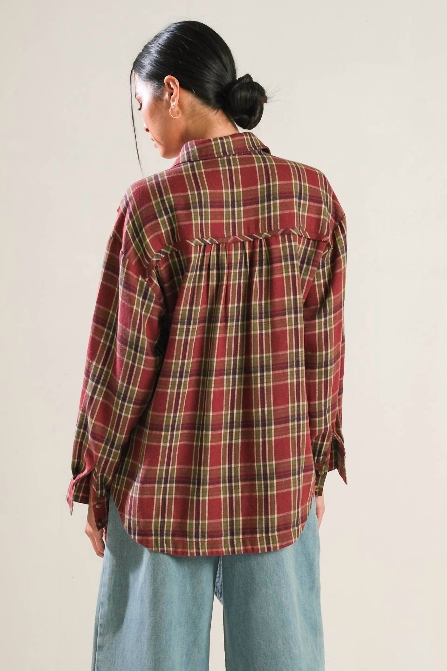 This button down shirt is comfortable yet polished. The Daniella Top by FLYING TOMATO is a striking addition to any wardrobe with its bold plaid print in rich burgundy. This long sleeve button-down shirt, crafted from 100% cotton, combines comfort and style, making it ideal for everyday wear. Designed with a collar neckline and convenient pockets, it resonates with streetwear trends for the summer season. Made in China, it requires hand washing for care and features a button closure for a classic finish.