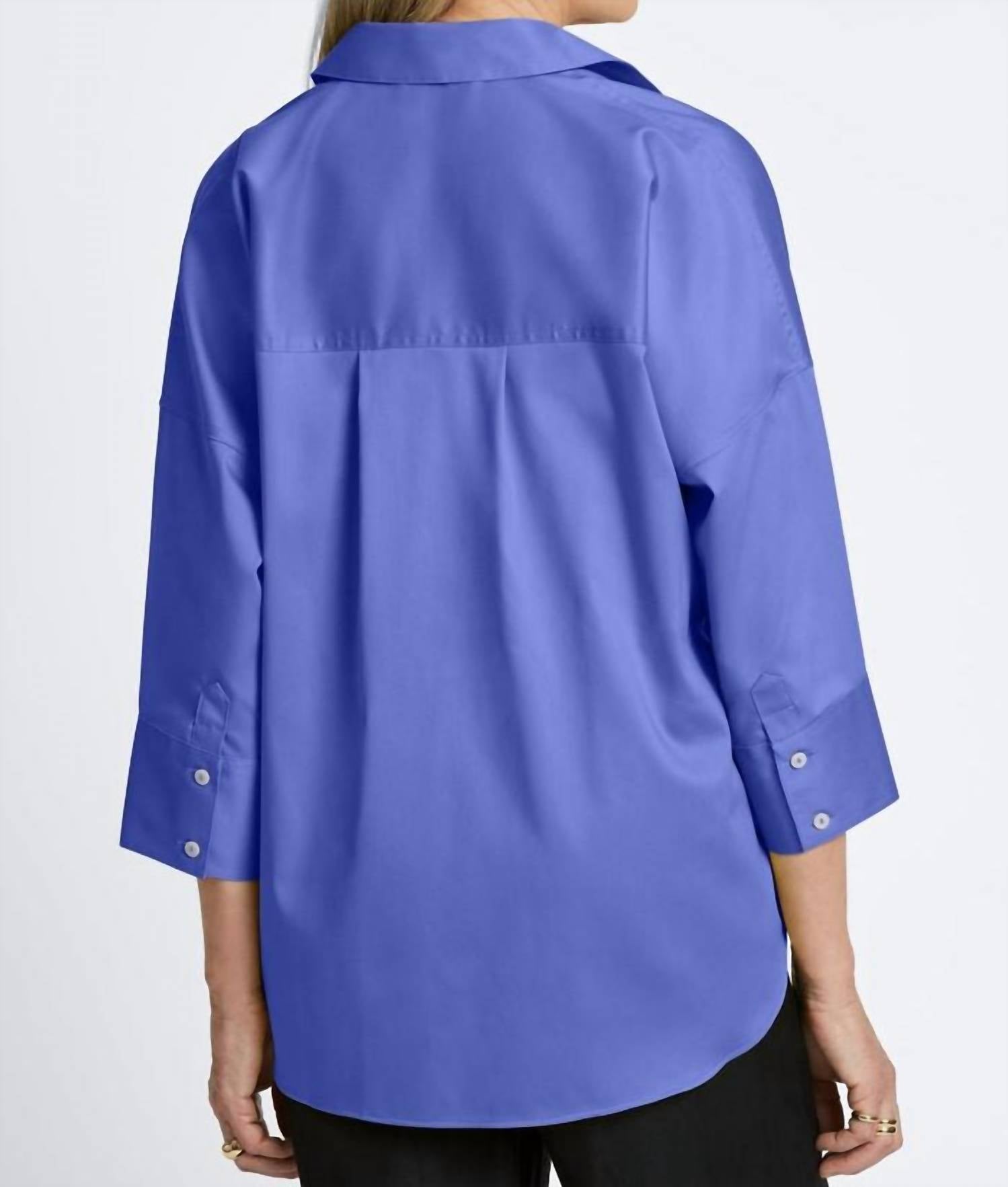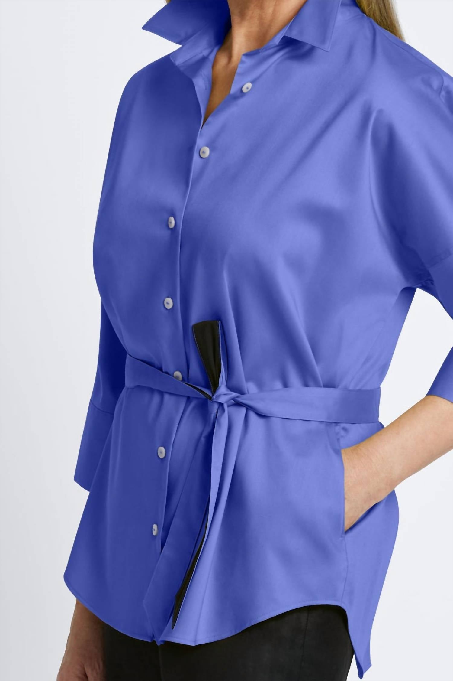 This button down shirt is comfortable yet polished. Elevate your wardrobe with the Avery No Iron Stretch Matte Sateen Shirt by Foxcroft in vibrant chartreuse. Designed with three-quarter sleeves and a relaxed fit, it provides both style and comfort. This women's button-down shirt is crafted from a cotton blend of 58% cotton, 37% polyester, and 5% spandex, featuring a contrasting self-tie belt and on-seam pockets for added functionality. With a button closure and a center back length of 29" on a size S, it is easy to maintain by machine washing cold, tumble drying low, and warm ironing if needed.