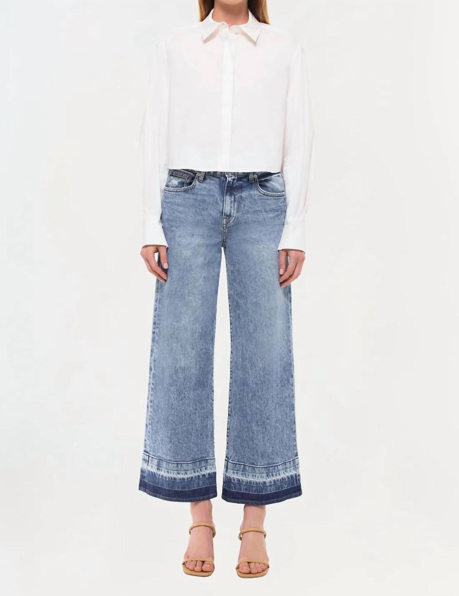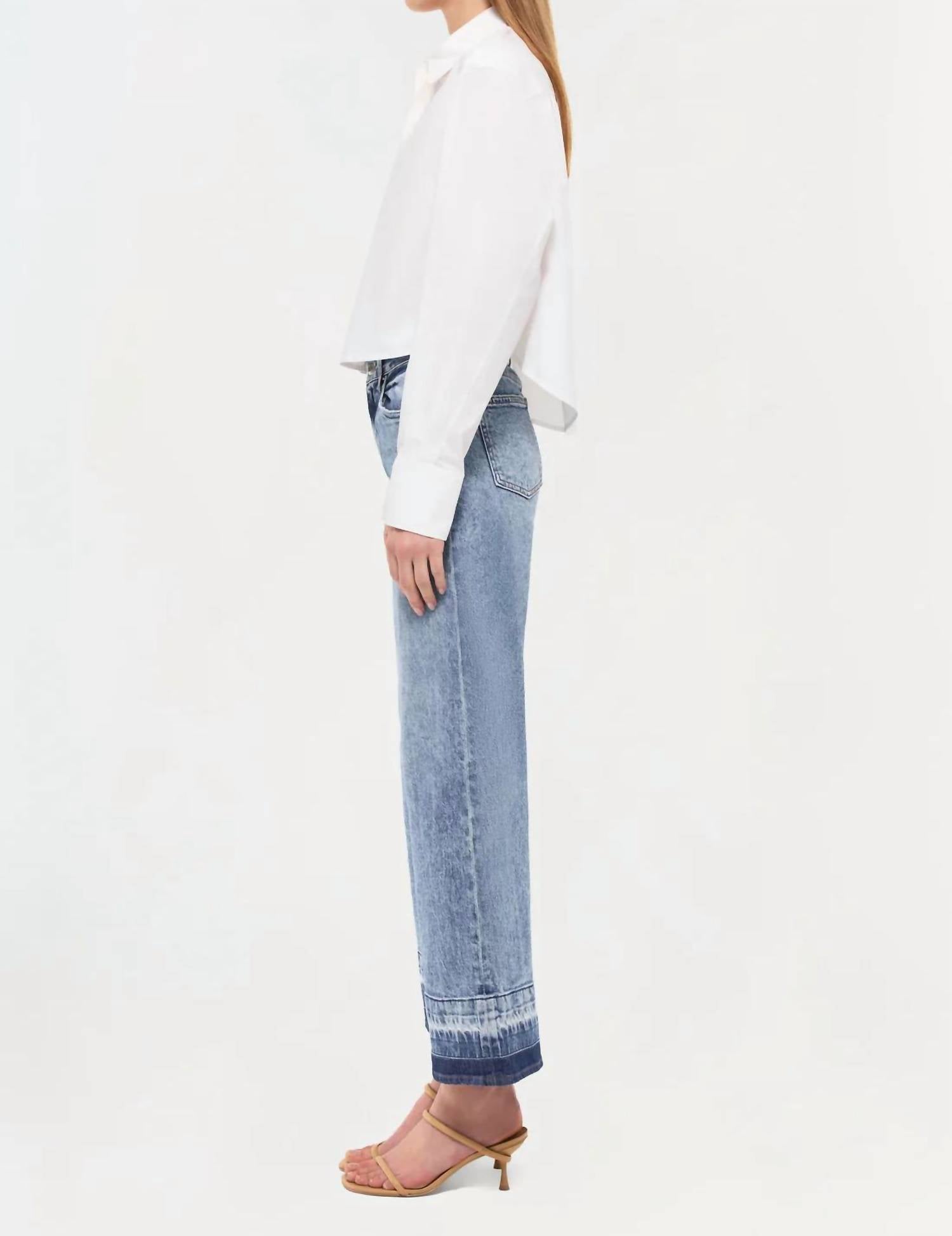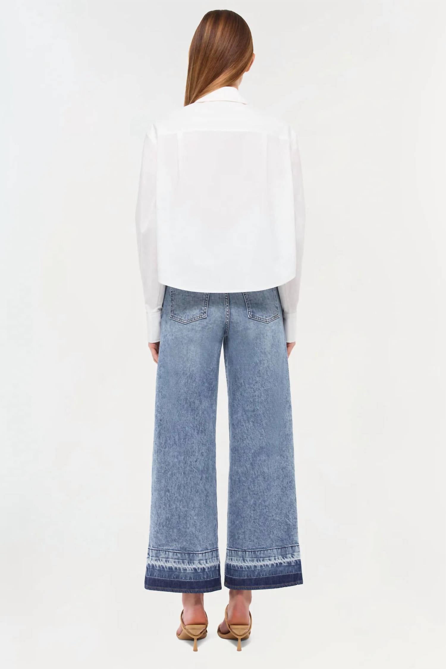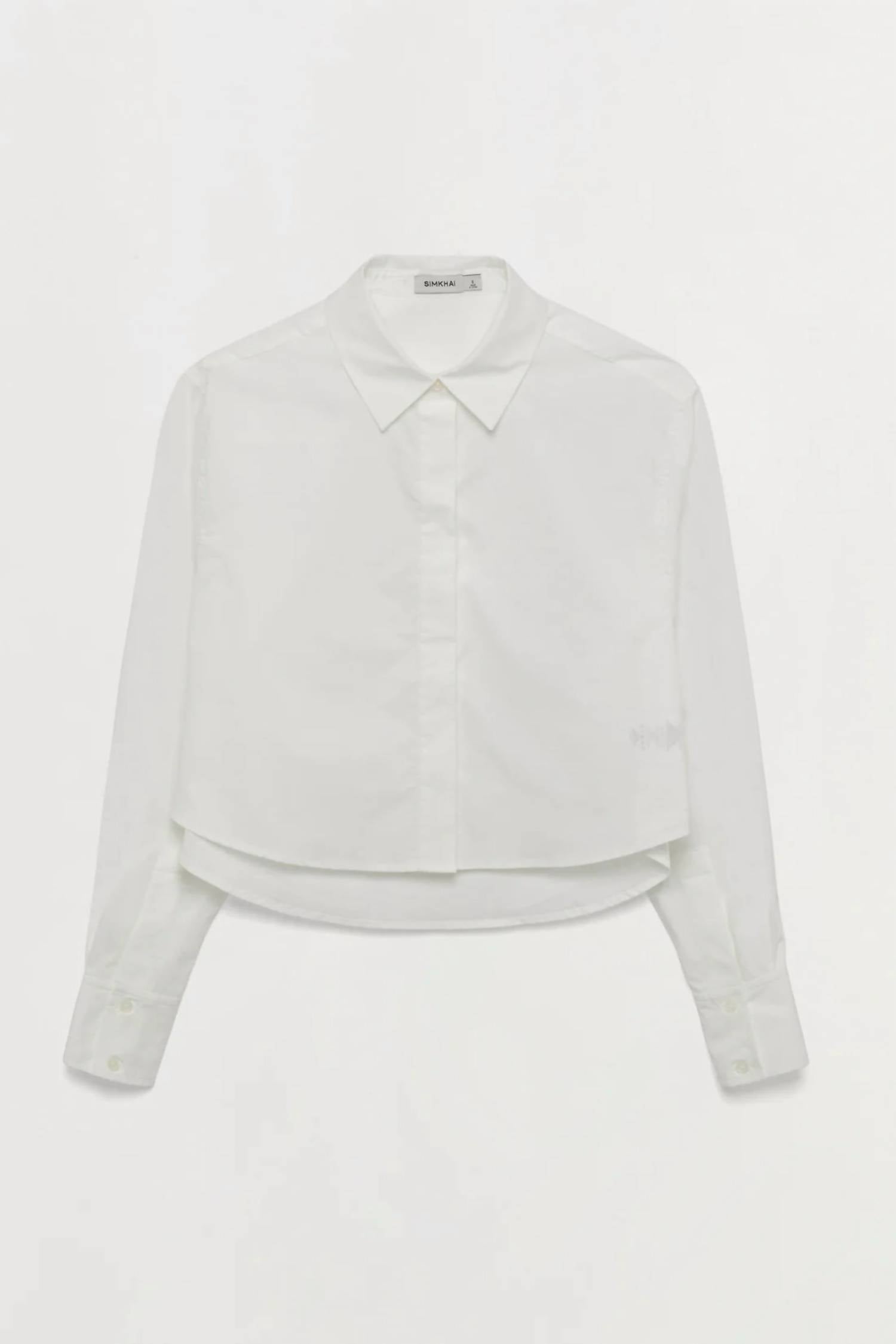 A classic button down shirt that will never go out of style. Elevate your wardrobe with the Renata Cropped Button Down Shirt by SIMKHAI, a modern staple in crisp white. This long sleeve shirt is crafted from a 63% cotton and 37% polyester blend, offering both comfort and a sophisticated silhouette. Imported with a precise button closure, this versatile piece is designed with a sharp collar and clean front for added elegance. Care instructions recommend dry cleaning only to maintain its pristine condition. Model is 5'9" and is wearing a size Small.