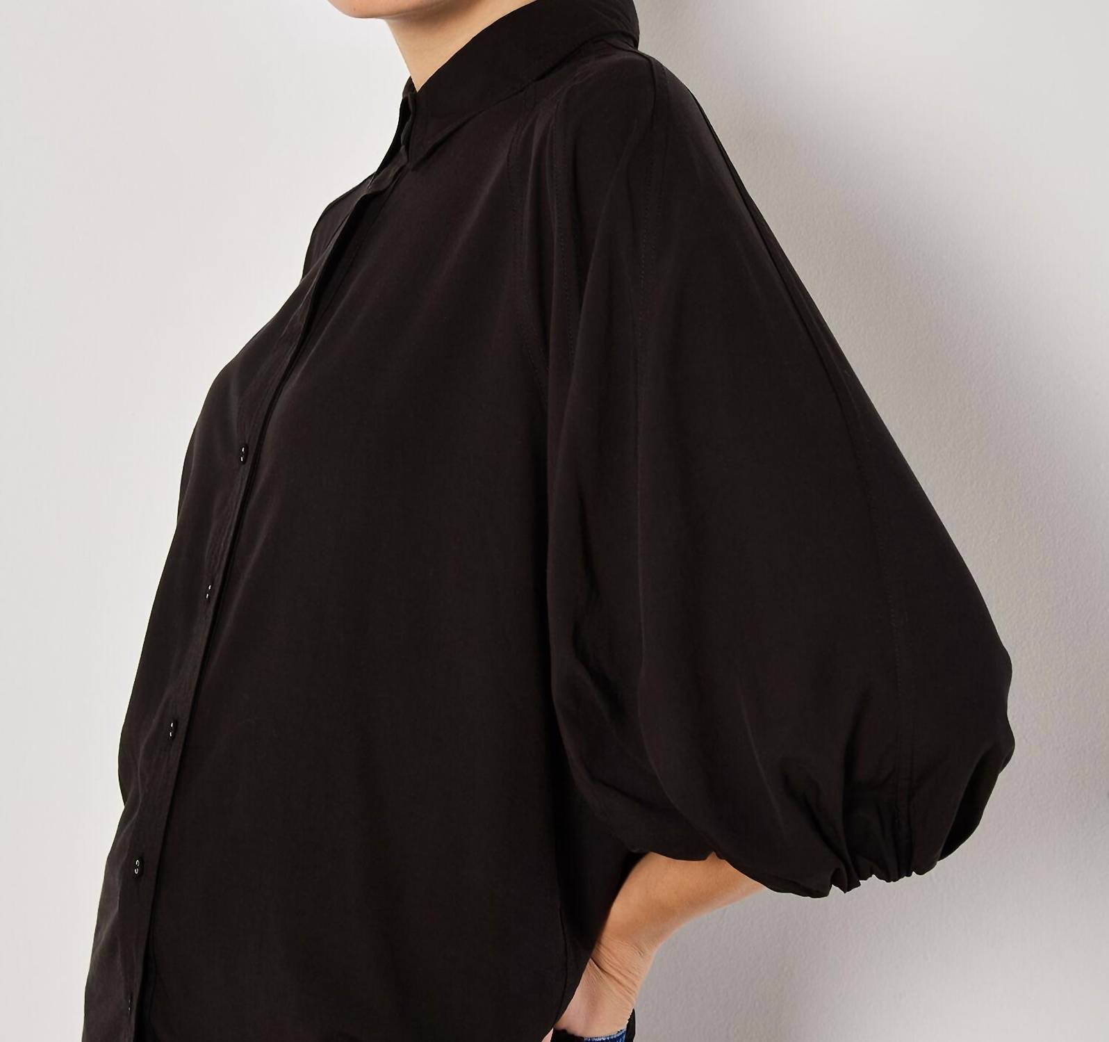 A classic button down shirt that will never go out of style. Introducing the Seam Detail Puff Sleeve Shirt by Apricot, a standout piece in chic black to enhance your wardrobe. Crafted with three-quarter sleeves and a sophisticated fold back collar, this shirt is made from a blend of 69% Viscose and 31% Lyocell. Featuring a length of approximately 64.5cm, this shirt showcases exposed seam detailing and a button-down closure. Designed for a regular fit, it offers a stylish option for any occasion, with care instructions for easy machine washing. Model is wearing a size XS/UK 8 and stands at 5' 9" tall.