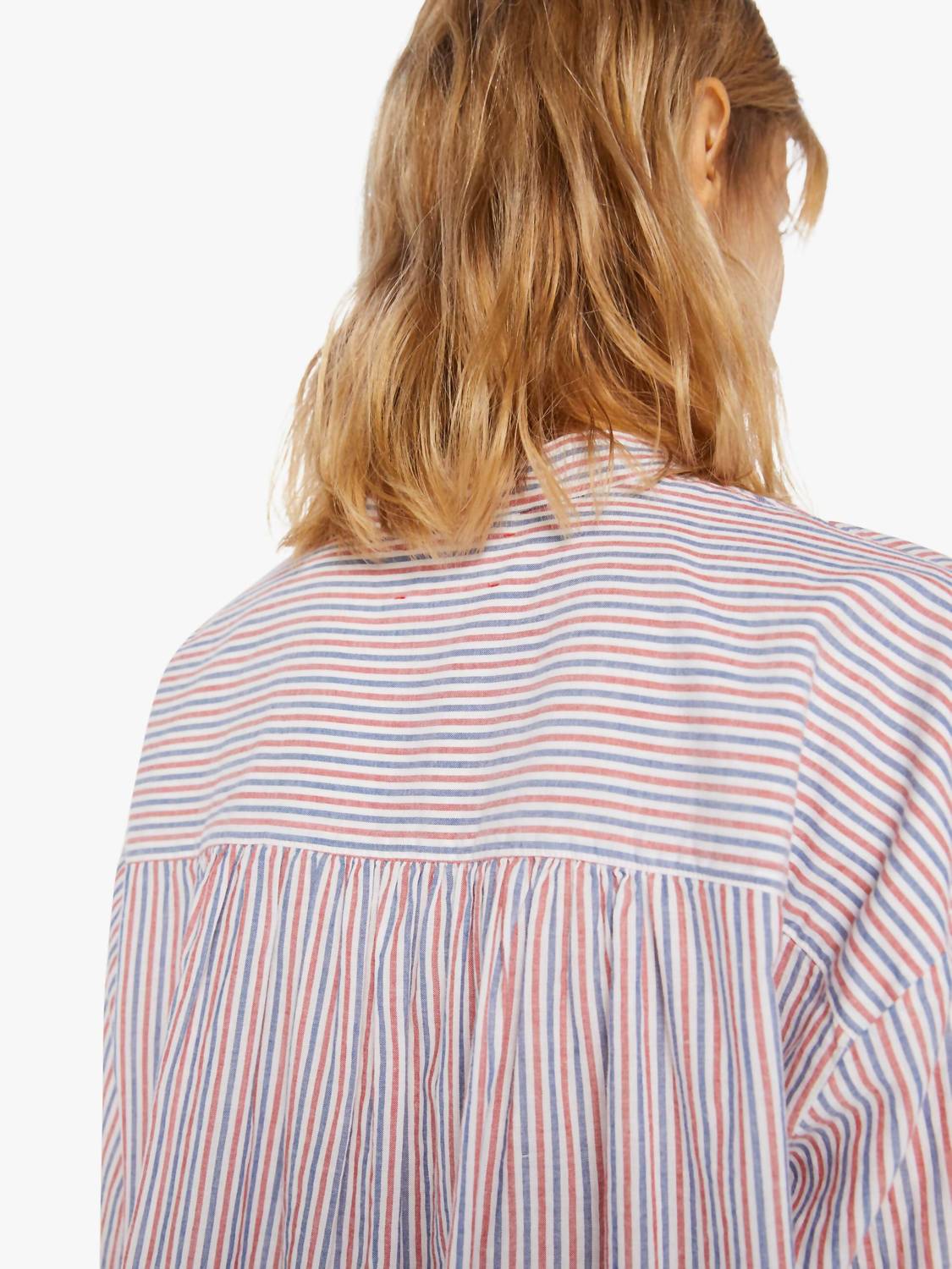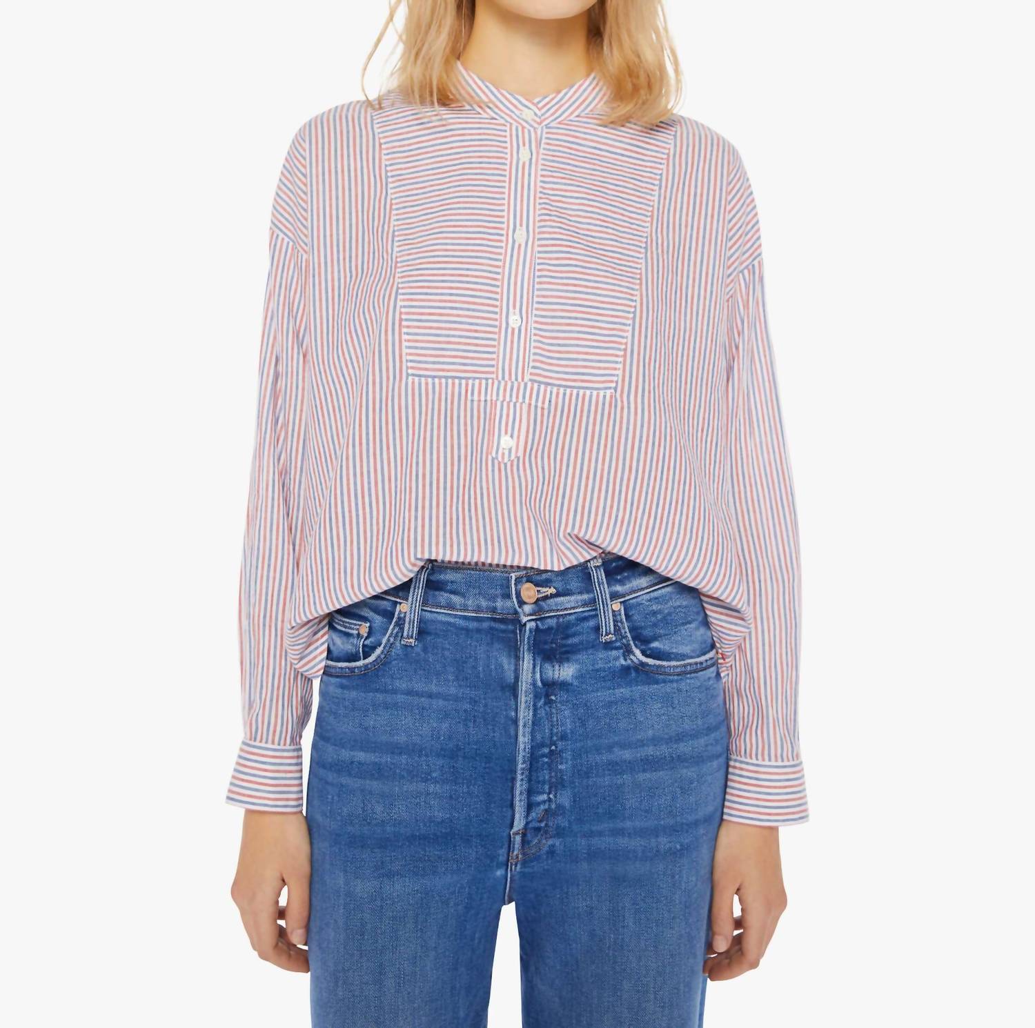 Perfectly tailored and soft to the touch. Discover the Malone Shirt by XIRENA, a long-sleeve blouse that captures the free-spirited essence of Cali. Crafted from 100% cotton, this piece displays a vibrant stripe pattern in Firework Stripe, along with a buttoned V-neckline and drop shoulders. The design is completed with long balloon sleeves and a subtly curved hem. Closure: Button closure.