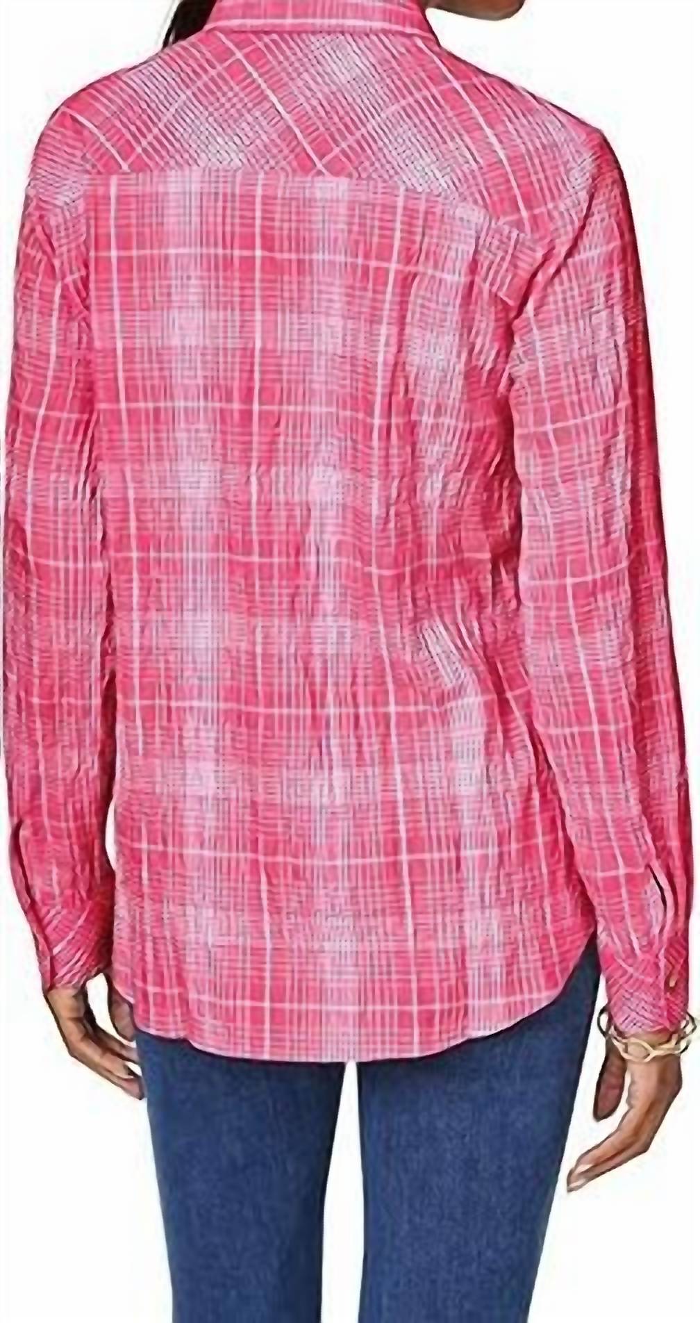 A classic button down shirt that will never go out of style. Elevate your wardrobe with the Women's Rhea Plaid Perfection Long Sleeve Shirt by Foxcroft, a standout piece in pink plaid perfect for vacation-ready style. With long sleeves featuring single button cuffs and a straight hem accented by side slits, this shirt offers a traditional fit paired with a point collar for a polished look. Crafted from a blend of 59% cotton, 40% rayon, and 1% nylon, it boasts horn buttons and a touch of stretch for added comfort. The button closure and easy-care instructions make it a breeze to maintain: simply machine wash cold with like colors, line dry, and skip the iron for lasting style. Center back length measures 27 1/4" in size 8.