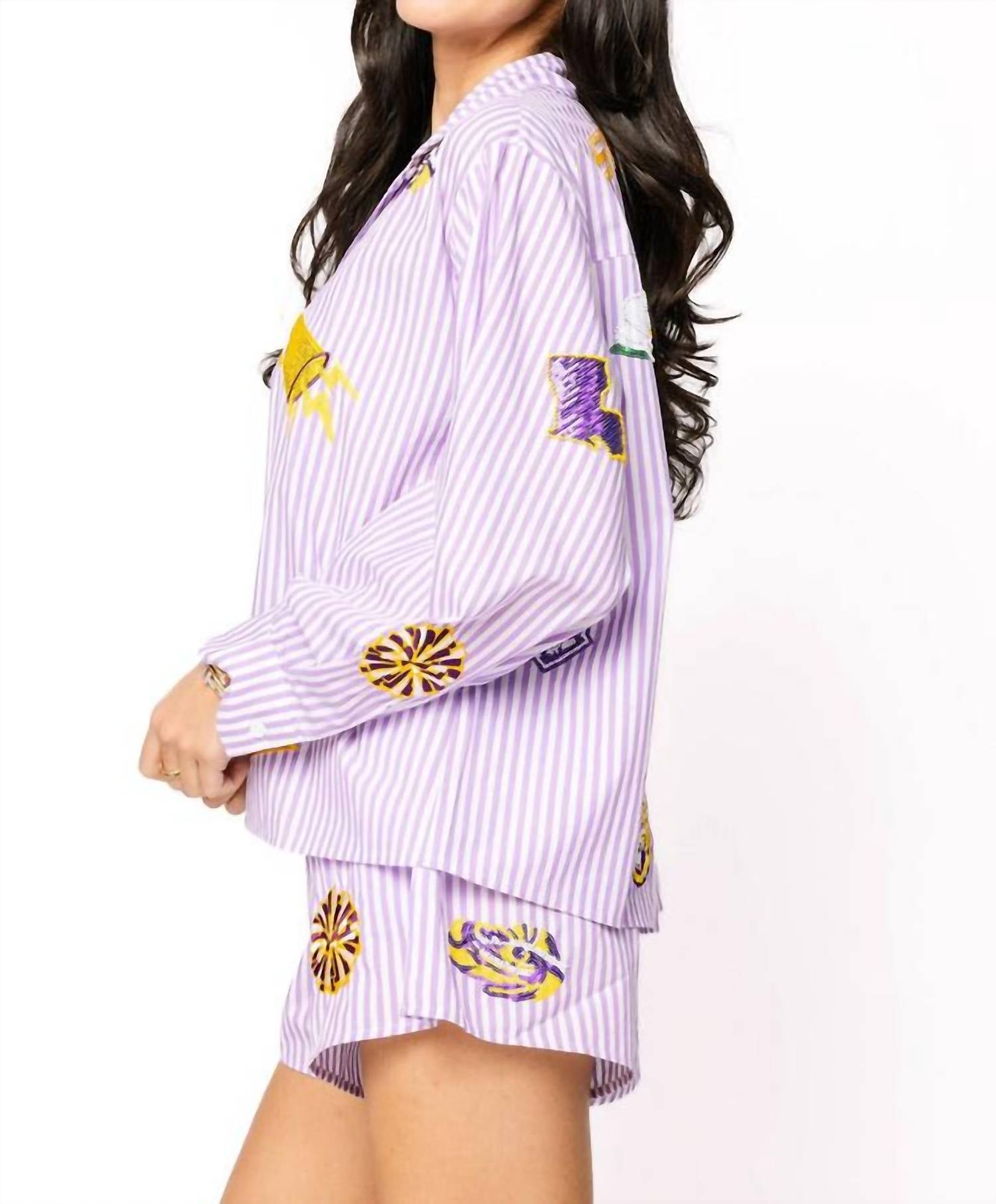 Queen Of Sparkles - Licensed Lsu Mini Icon Striped Button Down Top