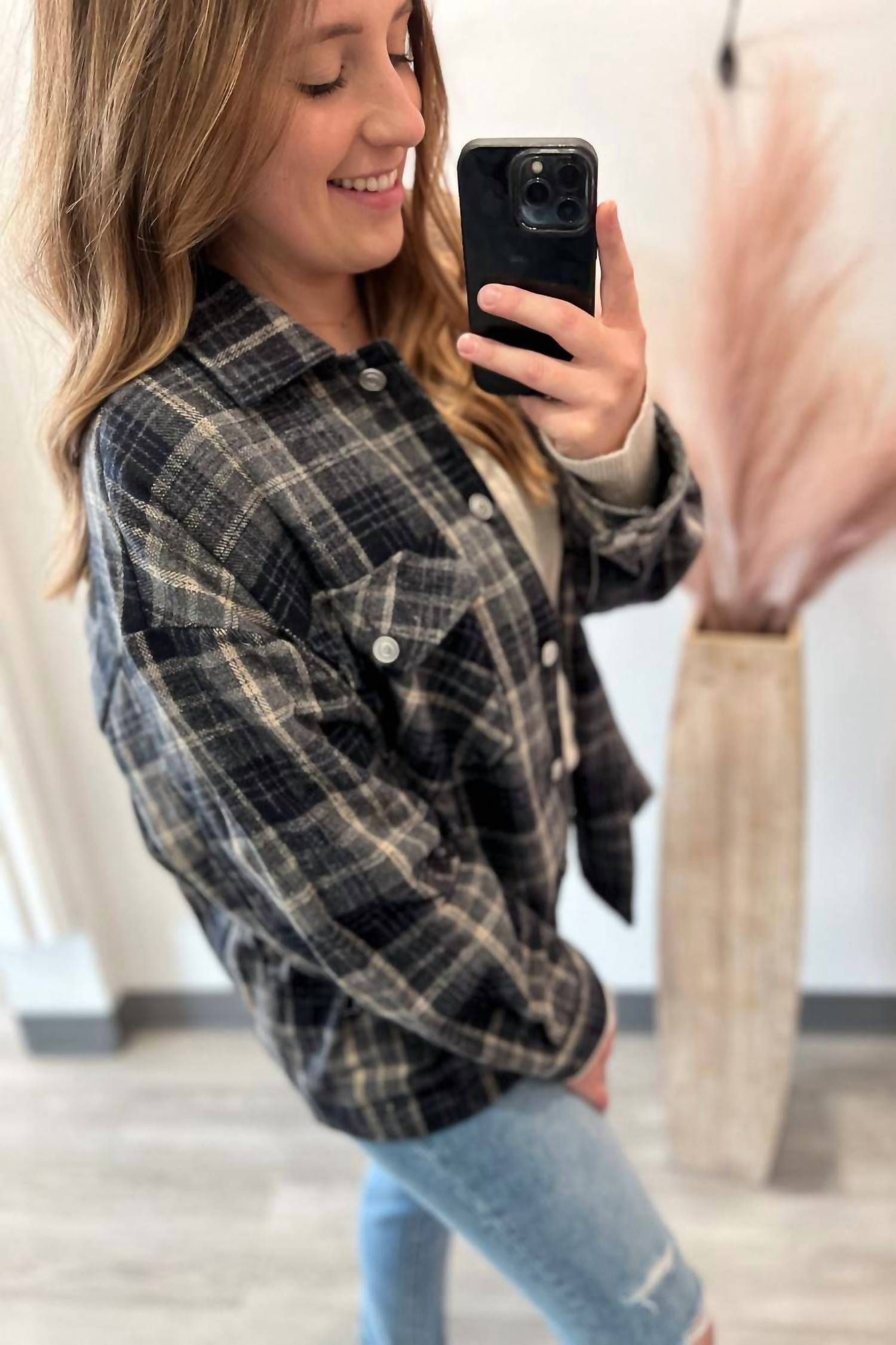 Perfectly tailored and soft to the touch. Meet the Plaid Shacket by Mikarose, a stylish and practical addition to your wardrobe in Shadow Grey. This polyester-crafted piece features long sleeves and a relaxed 17-inch length, offering both chest and side pockets for convenience. With a classic button closure and collar neckline, it effortlessly blends utility and style. Measurements are provided to ensure a perfect fit: small bust, waist, and hips all measure 46 inches, while sizes go up to XXL with a bust of 54 inches.