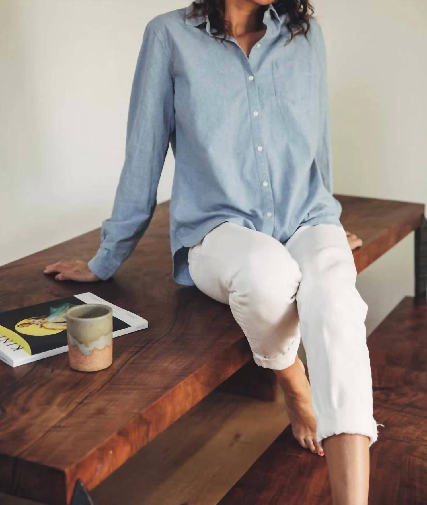 This button down shirt is comfortable yet polished. This Trovata shirt is the perfect marriage of classic style and casual chambray. With its super breathable cotton, antique white buttons, and single chest pocket, you'll be ready for work and play in one fell swoop. Classic button down fit. Fits true to size. Model is 5'7" and wearing a size S. 100% cotton. Breathable and meant for summer time light layers. Machine wash cold, separately. Tumble dry low, medium iron as needed.