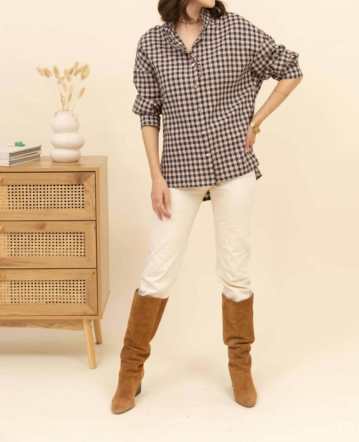 Inspiration Studio - Gingham Ruffle Jacquard Shirt