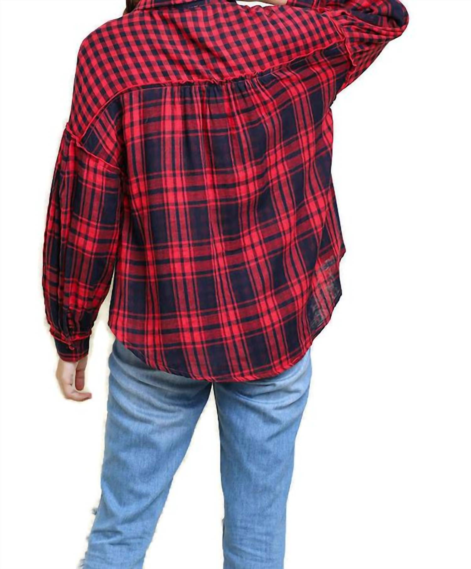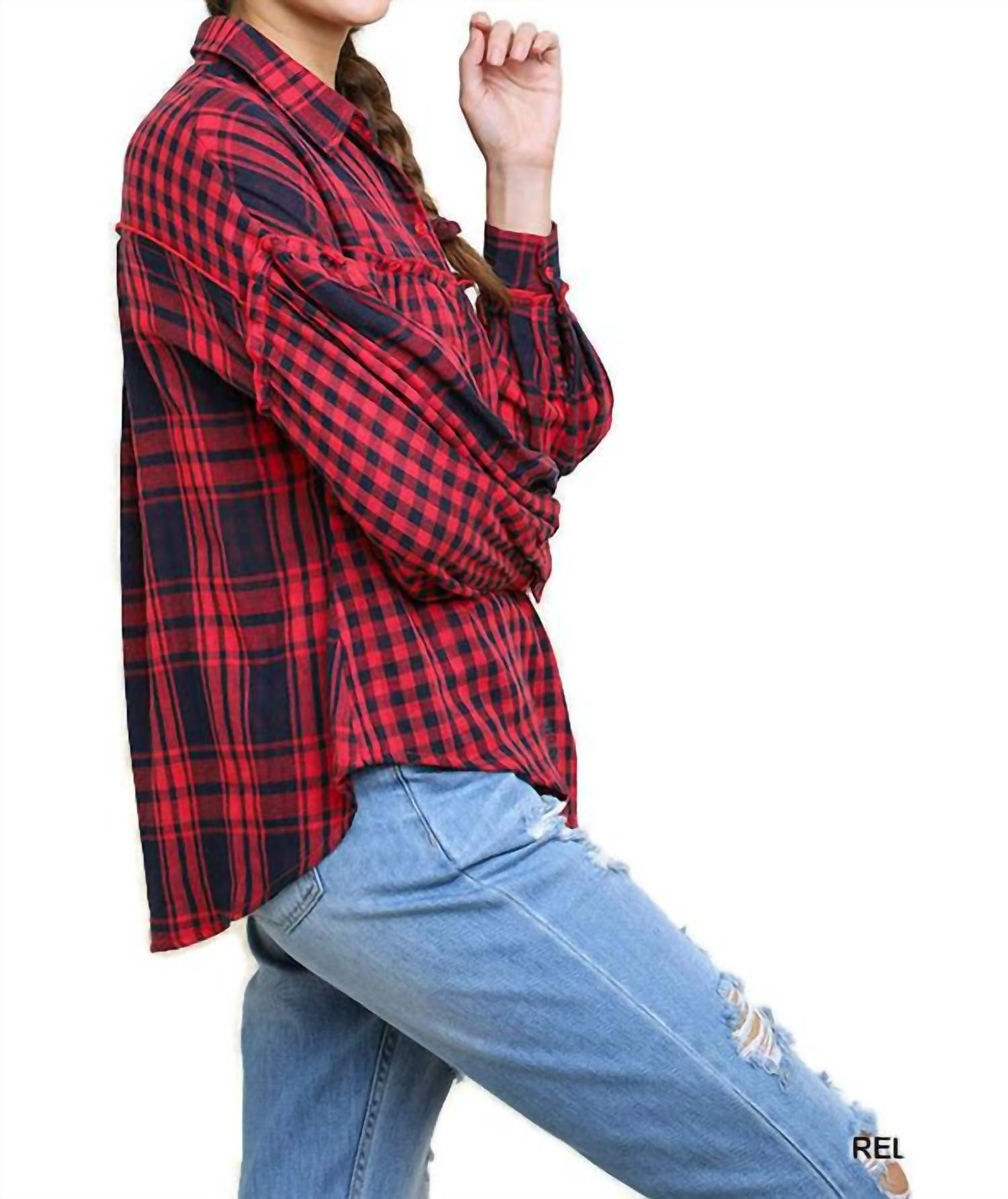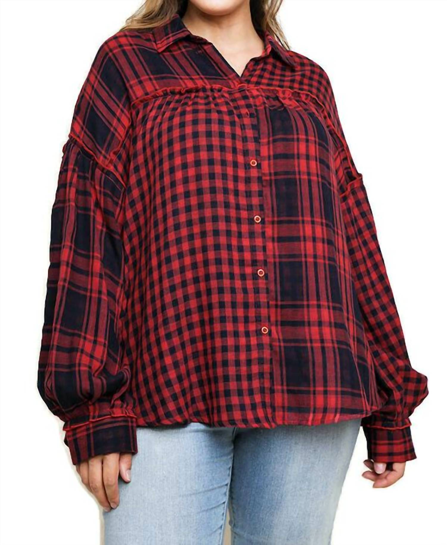 This top features a classic collar, button-down front, long sleeves, a scoop hemline, surged seams, lightweight fabric, and an oversized fit. Small Bust 42" Length 28"; Medium Bust 44" Length 28"; Large Bust 46" Length 28"; XL Bust 48" Length 29"; 1X Bust 50" Length 29"; 2X Bust 52" Length 29". 100% cotton. Imported. Hand wash cold.