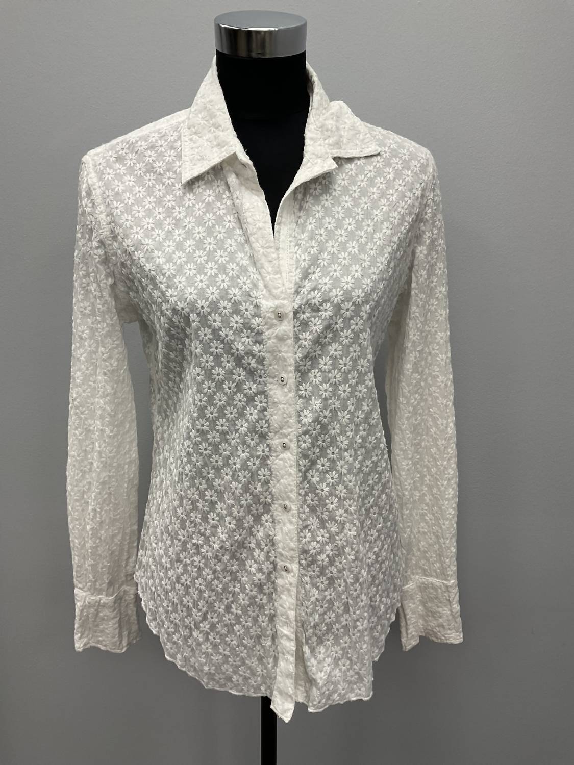 White embroidered cotton shirt. Made in Italy. 100% cotton