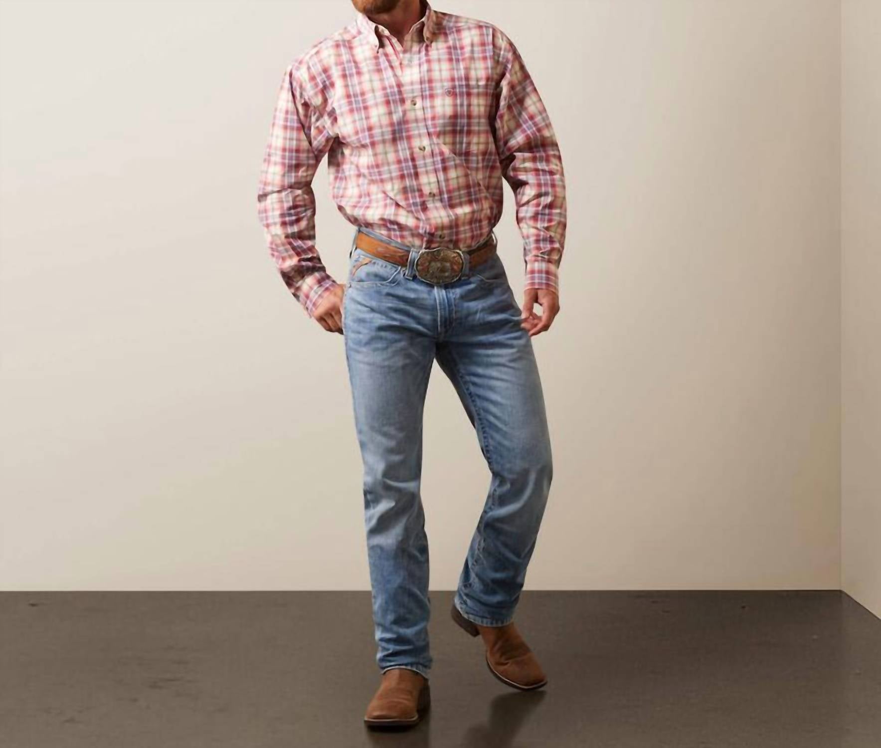 Perfectly tailored and soft to the touch. Introducing the Derek Classic Fit Long Sleeve Shirt by Ariat, tailored for a modern Western aesthetic in a Multi Plaid & Check pattern. Crafted from a comfortable cotton blend, it features a classic collar and practical pockets. This button-down shirt is perfect for spring occasions, offering a stylish nod to timeless design. Care is a breeze with machine wash instructions, adding convenience to your wardrobe rotation.