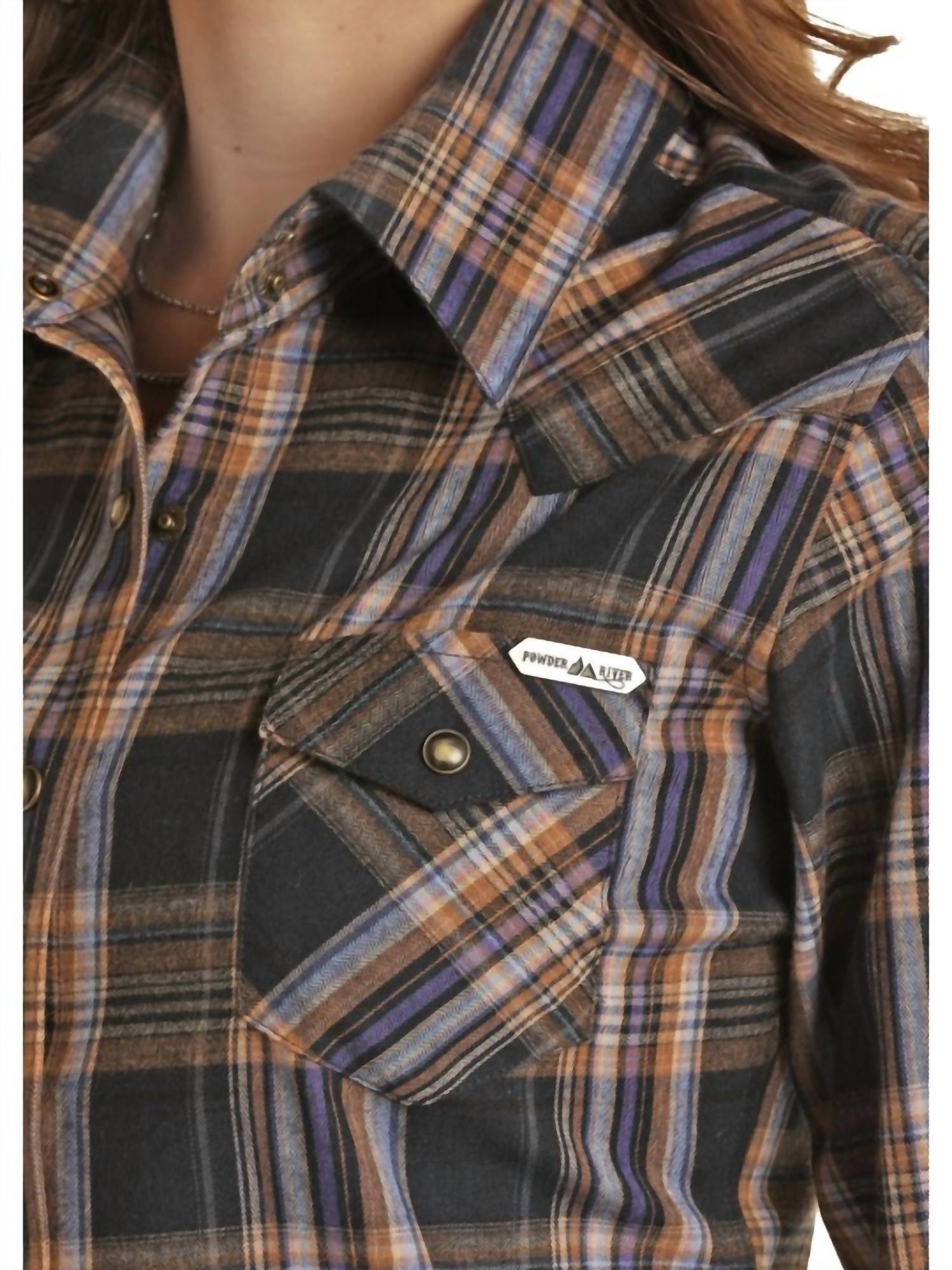 This button down shirt is comfortable yet polished. Introducing the Powder River Brushed Cotton Snap Shirt, a timeless piece crafted in a classic plaid and check pattern with long sleeves. Made from lightweight and durable brushed cotton, it offers both comfort and style in a rich dark brown hue. The design includes functional snap closure and two snap flap pockets for practical storage. This versatile shirt is ideal for various settings, with care instructions of machine wash and tumble dry for easy maintenance.