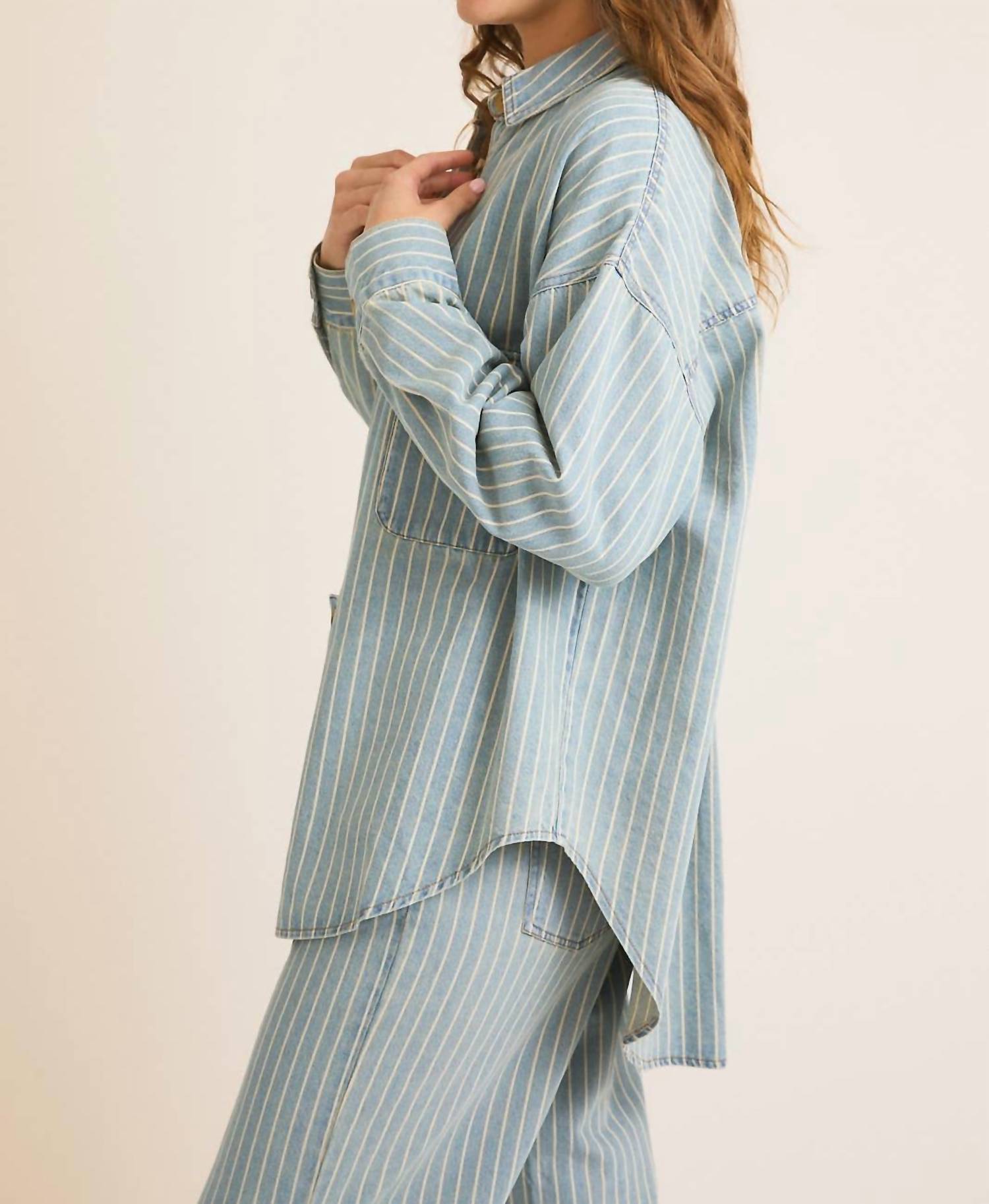 Perfectly tailored and soft to the touch. Elevate your wardrobe with the Kiley Boyfriend Button-Down Shirt by GILLI, a perfect blend of style and comfort. Designed with long sleeves and crafted in a solid blue hue, this piece features a chic collar and practical button closure. Ideal for holiday parties, it offers the convenience of pockets and an oversized fit for effortless layering in the spring season. Unfortunately, wash and dry instructions are not provided.