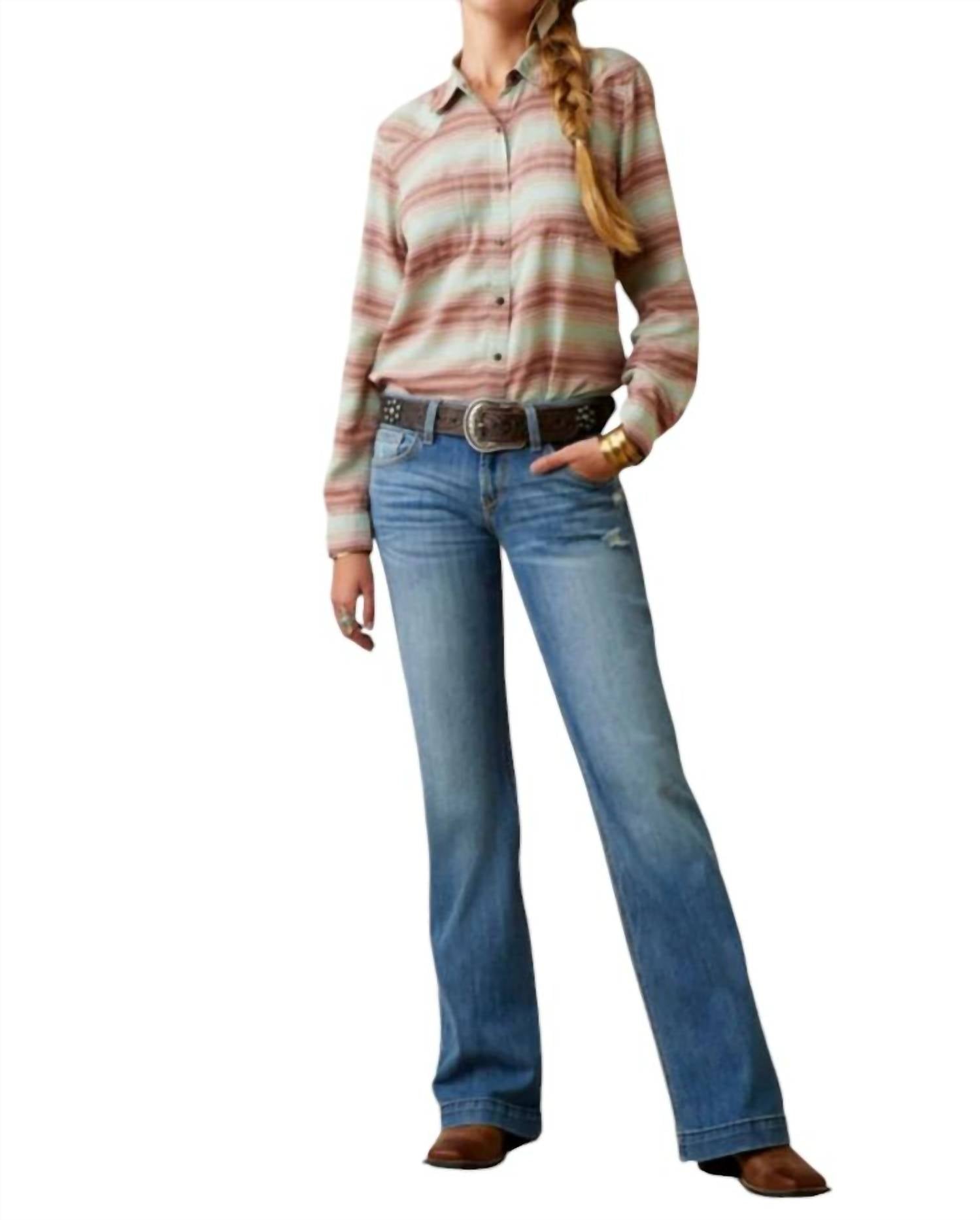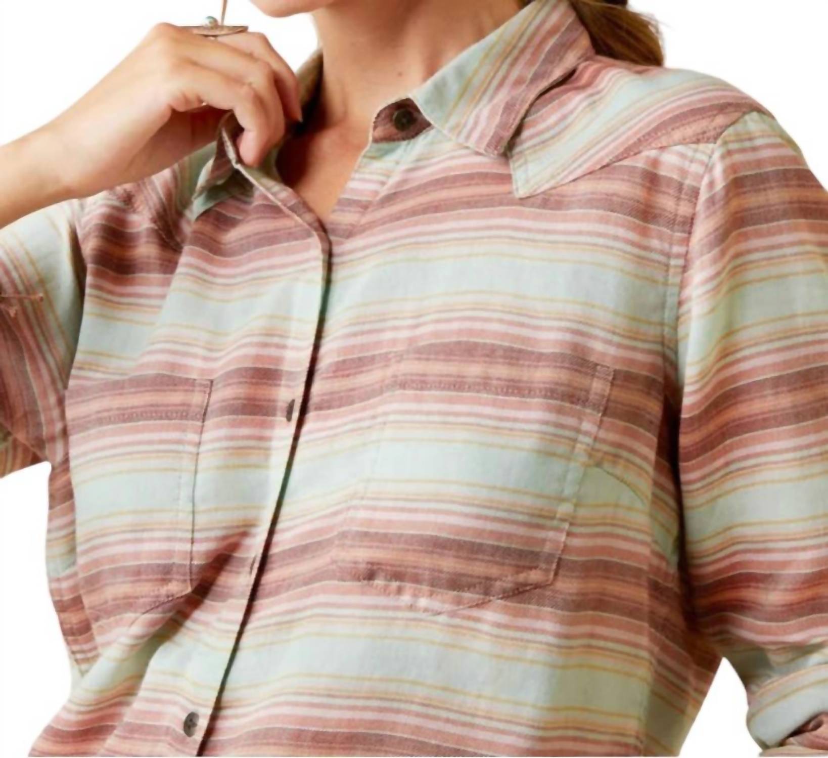 This button-down shirt is crafted from ultra-soft, woven serape fabric with front western yokes and chest pockets. Made from 100% pure cotton for breathability, it features a collared neckline and long sleeves.
