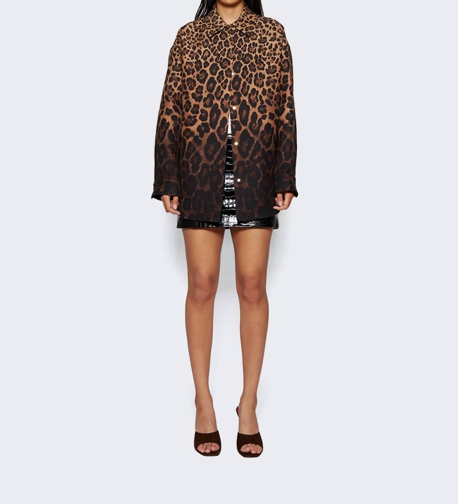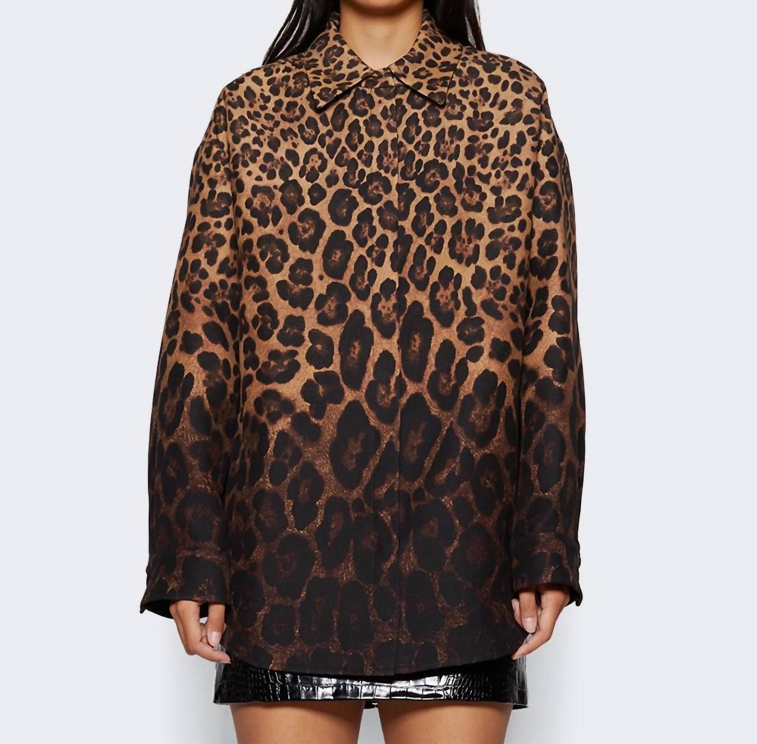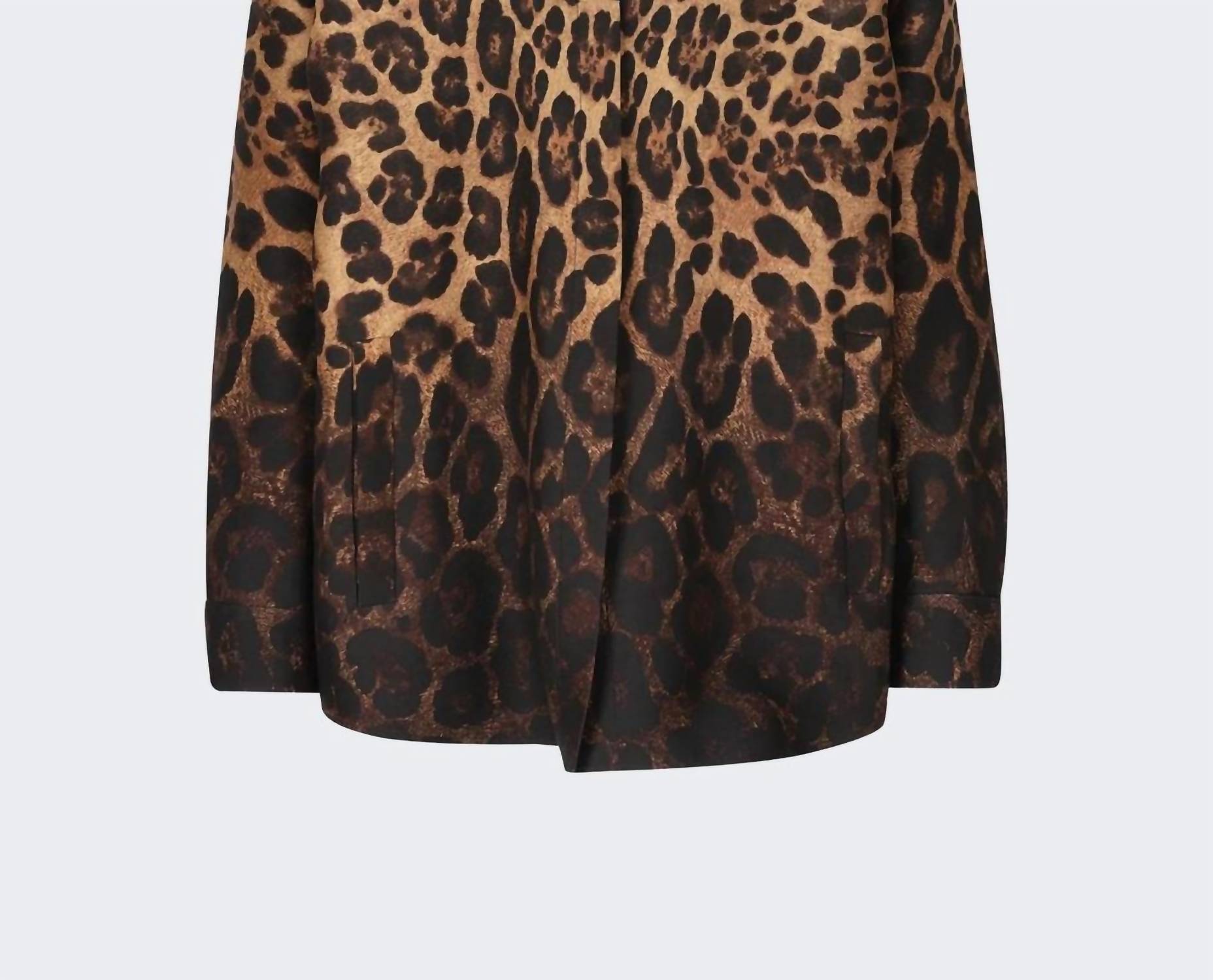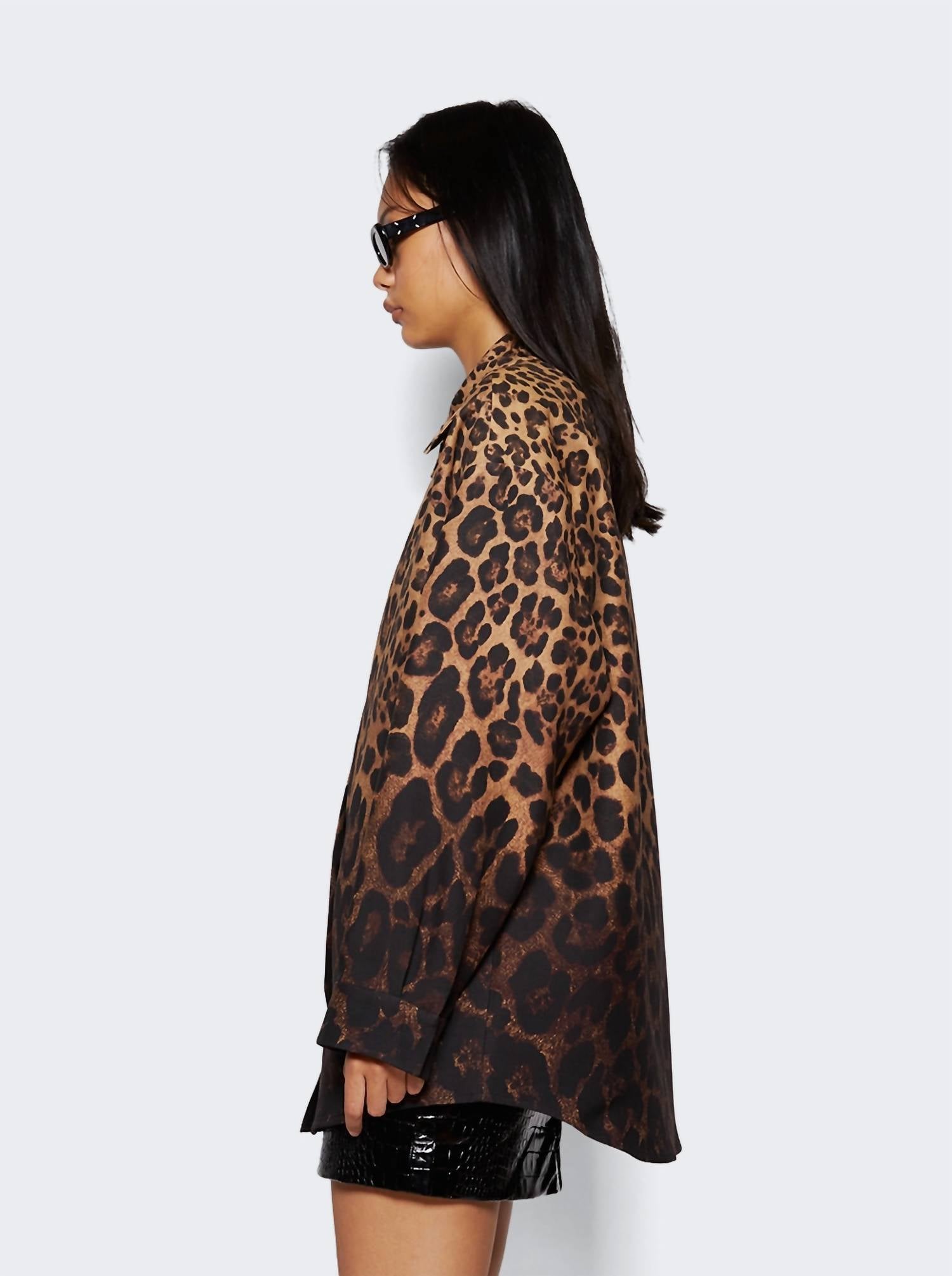 This button down shirt is comfortable yet polished. Immerse yourself in luxury with the Valentino Buttoned Shirt, a statement piece adorned in an animal print. This long sleeve shirt, crafted from a sumptuous blend of 65% wool and 35% silk, ensures both comfort and style. It features an oversized fit with a classic collar and a concealed front button closure for a sleek silhouette. Designed for sophistication, care for this remarkable piece with dry cleaning. Model is 5'9"/175cm and wears a size IT40.