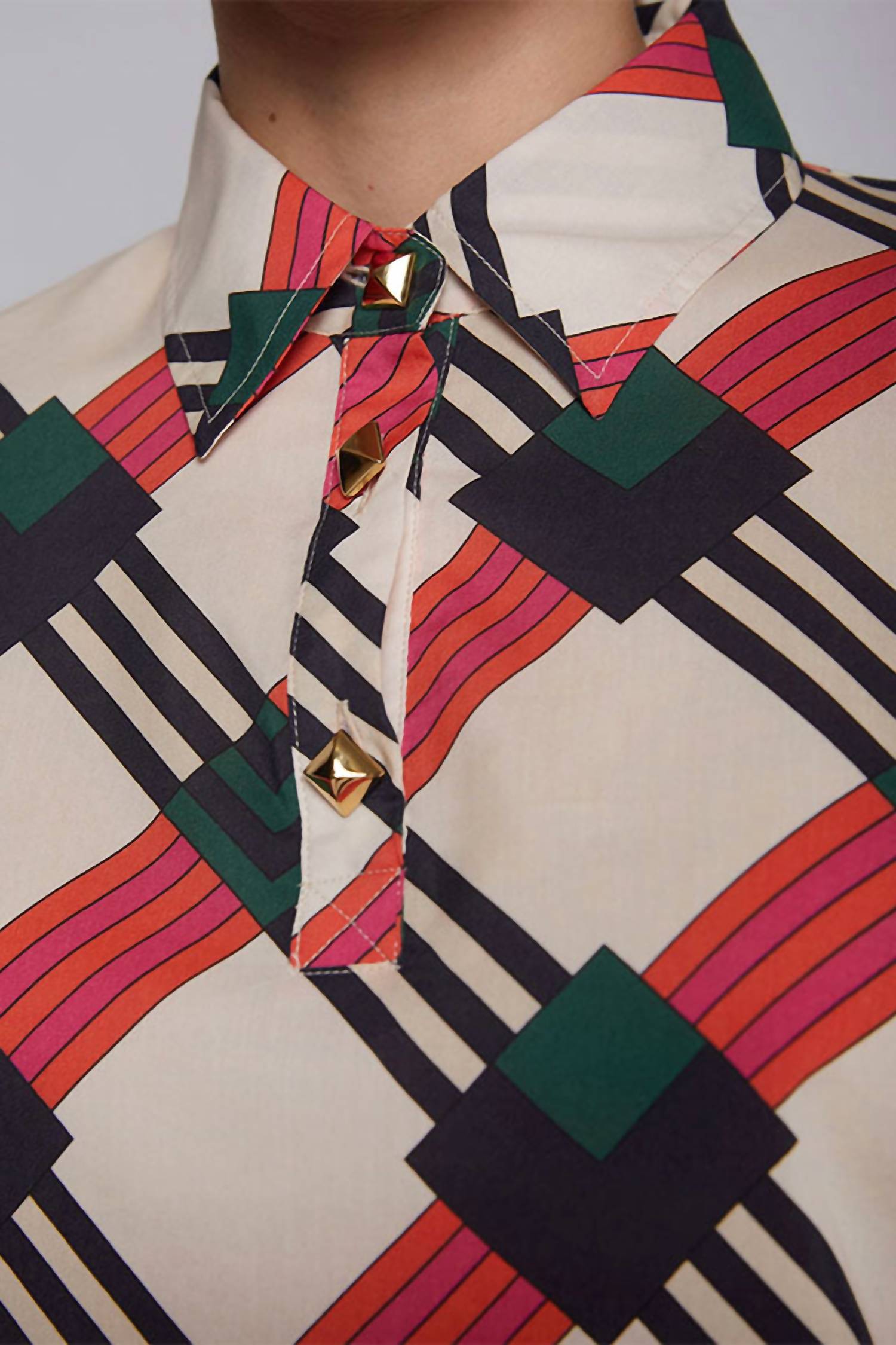 Elevate your wardrobe with the Kora Shirt by Vilagallo, featuring a captivating geometric print in ecru and orange. Made from premium cotton, this long sleeve button down shirt promises comfort and style, complete with a classic collar neckline. Closure: Button closure. Perfect for any occasion, this patterned piece is a versatile addition to your collection.