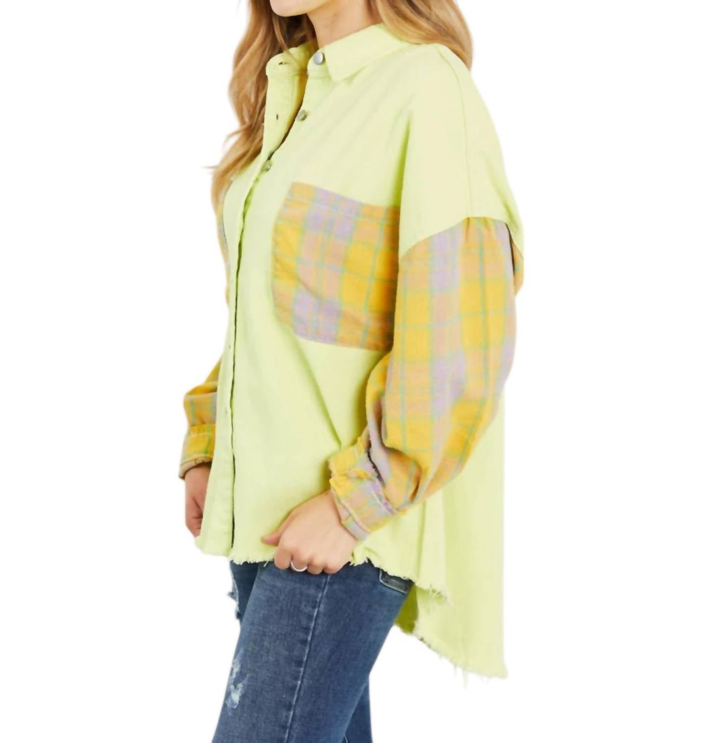 Designed as a jacket with long sleeves. Relaxed fit for comfort. French terry and plaid woven mix fabric. Versatile style combining casual and chic elements. Perfect for layering.