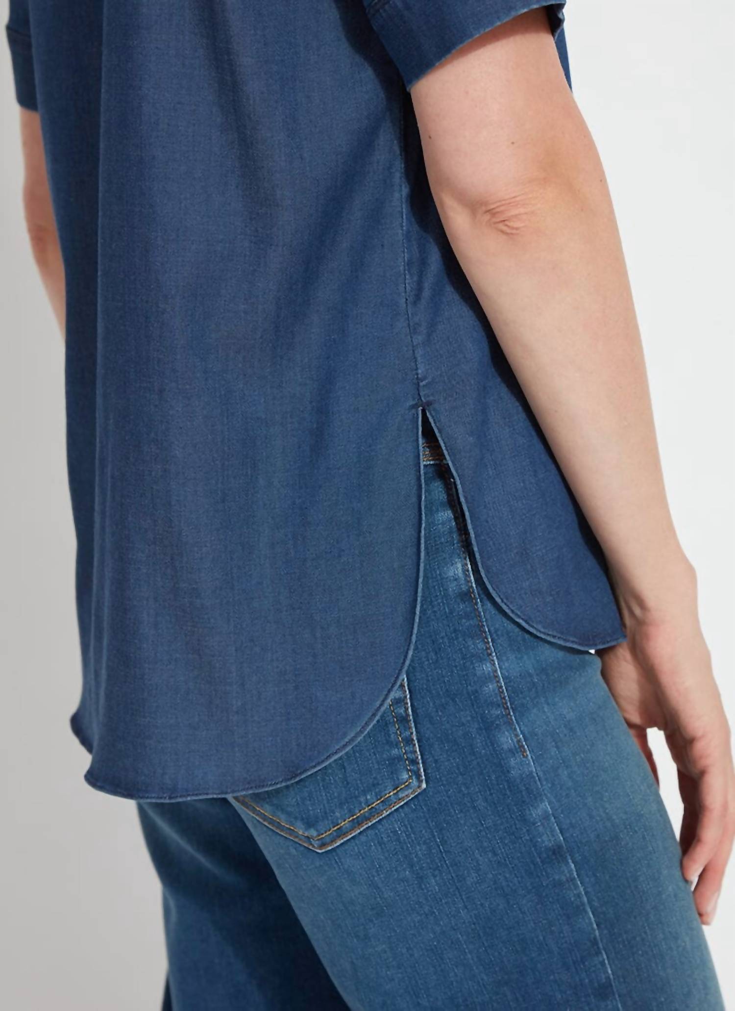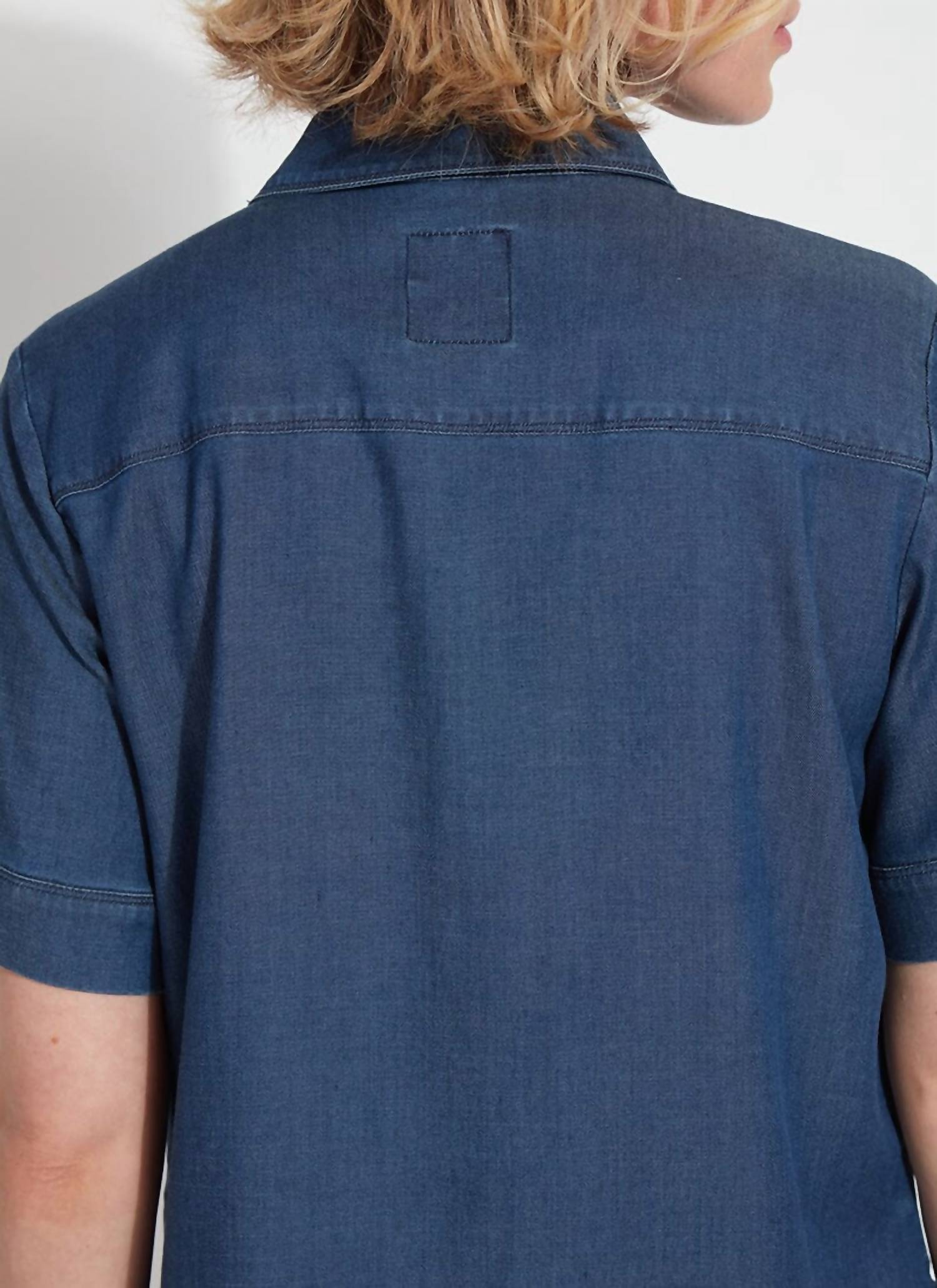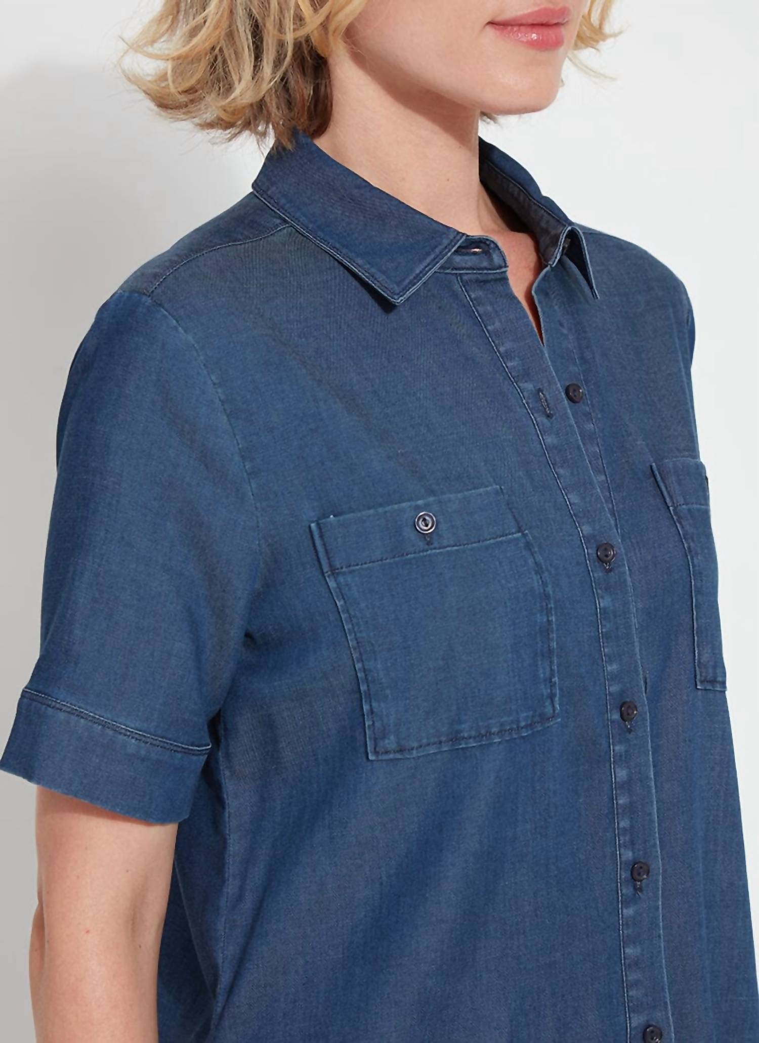 Perfectly tailored and soft to the touch. This short sleeve shirt is crafted from a blend of Tencel denim, including 63% Lyocell, 25% Polyester, 11% Viscose, and 1% Spandex, offering a soft, stretch fit that beautifully drapes. With patch pockets and a button closure, it presents a polished look with dyed-to-match topstitching and a rounded shirttail hem. For care, machine wash and line dry to maintain its elegant appearance.