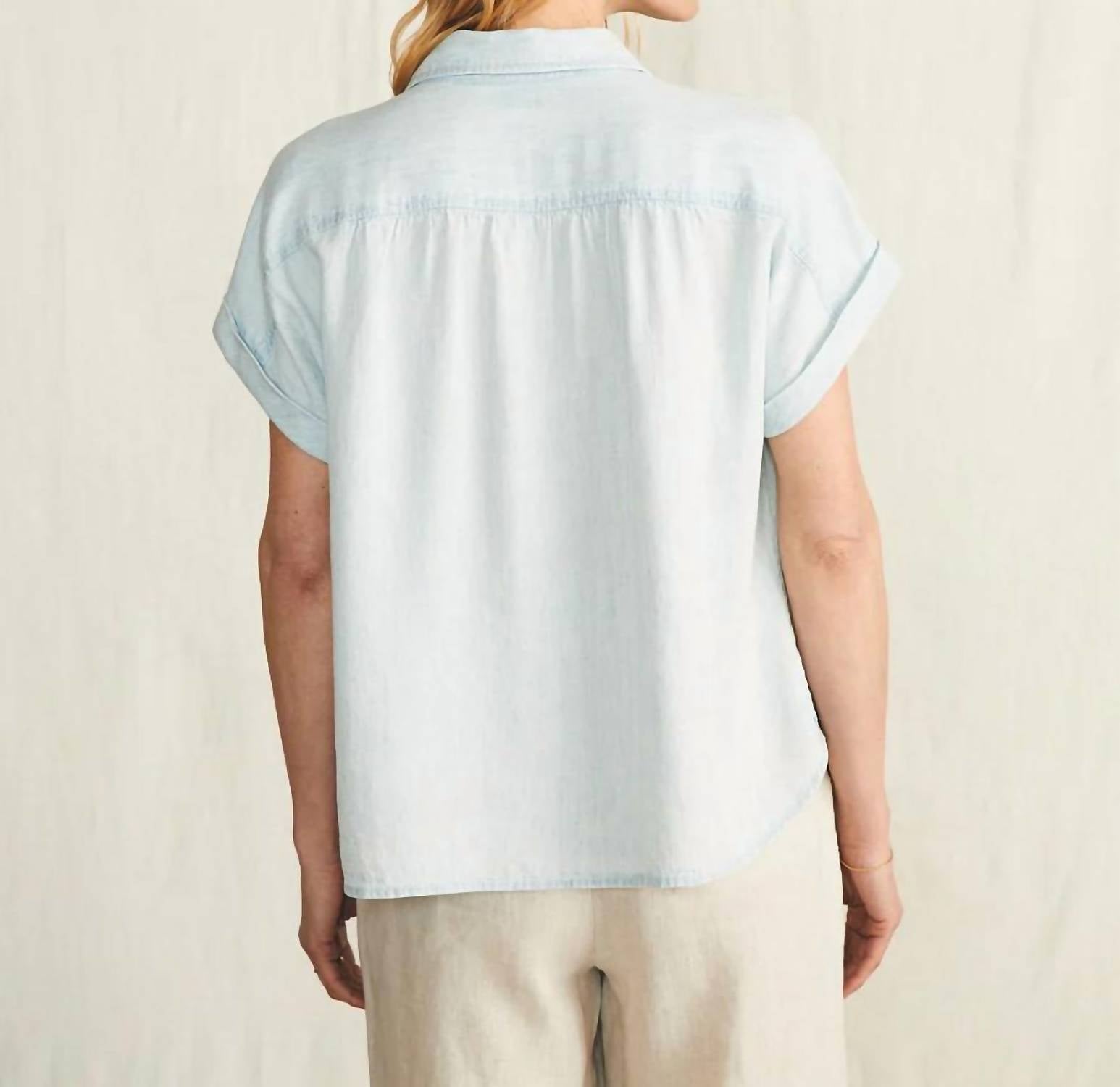 This button down shirt is comfortable yet polished. The Breeze Button Down Shirt by Faherty is a chic addition to your spring workwear collection. Crafted with rolled short sleeves, this women's shirt is composed of a linen blend made with 55% Hemp and 45% Tencel. It features a relaxed fit with a shirttail hem and gusset, adorned with coconut button closure for a touch of natural charm. Care: Hand wash and lay flat to dry. Ideal for engagements or any stylish occasion.