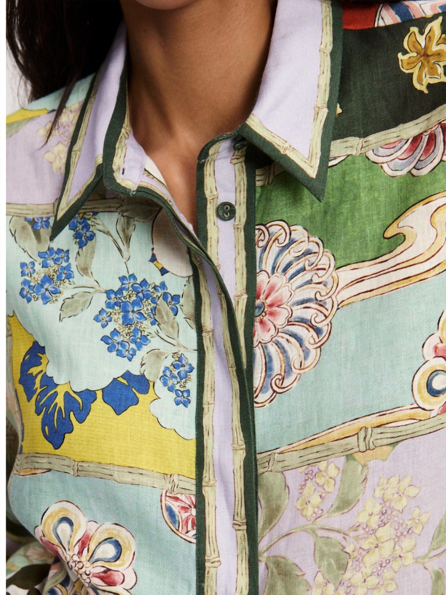 A classic button down shirt that will never go out of style. Elevate your spring wardrobe with the Bianca Short Sleeve Shirt by ALEMAIS, a vibrant multi-colored piece perfect for holiday parties. Crafted from 100% European Linen, this patterned shirt features a classic collar and a sophisticated concealed placket with self-covered button detail. Imported for quality assurance, its minimalist closure ensures a seamless fit. For best care, hand wash and lay flat to dry to maintain its luxurious texture.