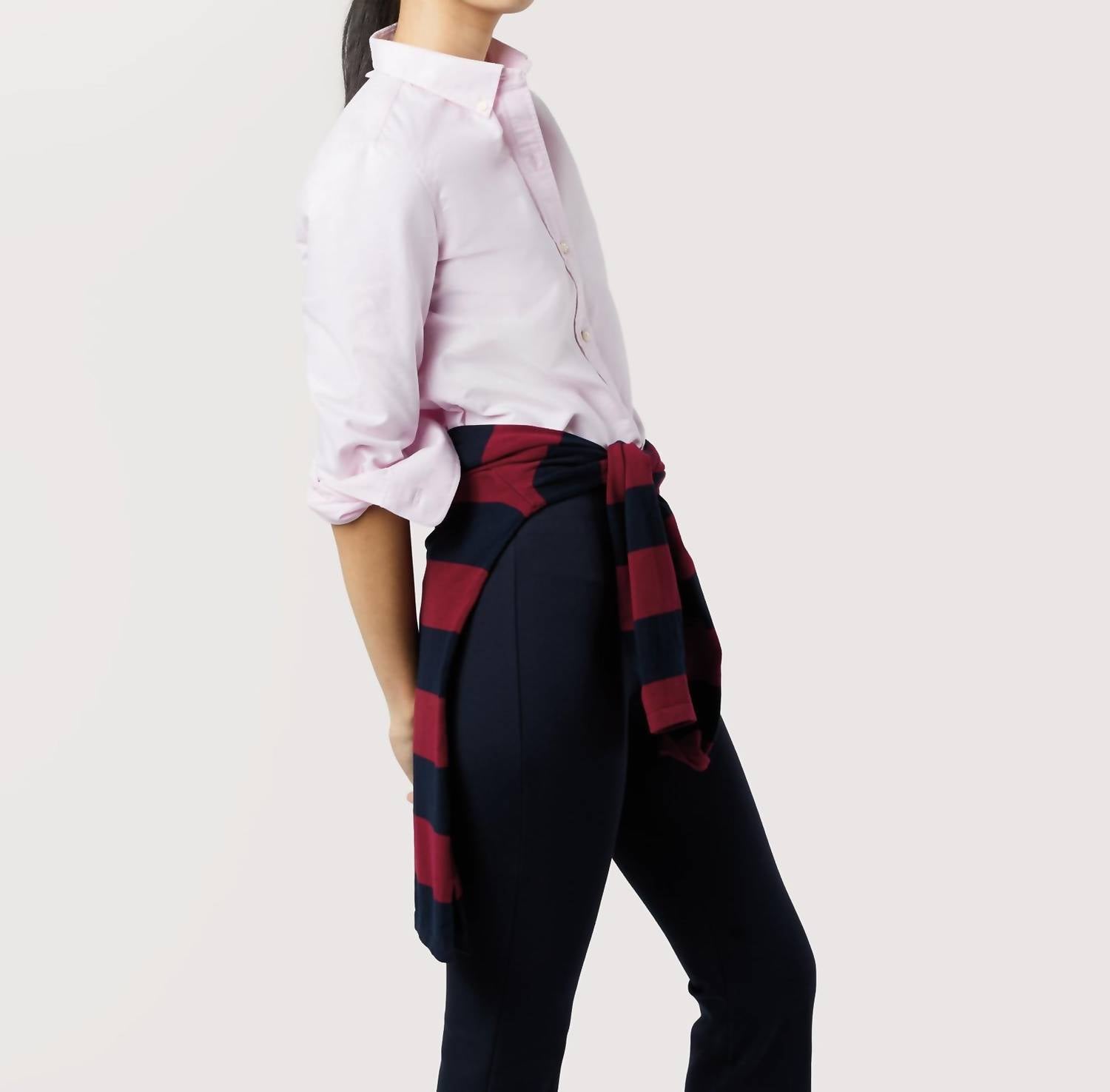 Perfectly tailored and soft to the touch. Elevate your wardrobe with the Schoolgirl Button-down Shirt by Ann Mashburn, featuring long sleeves for a polished, preppy feel. Crafted from 100% cotton, this light pink oxford shirt boasts a shrunken, flattering fit with uniform-inspired details, including a petite button-down collar and a handy locker loop. Closure type: Button closure. Care: Machine wash and line dry for effortless maintenance.