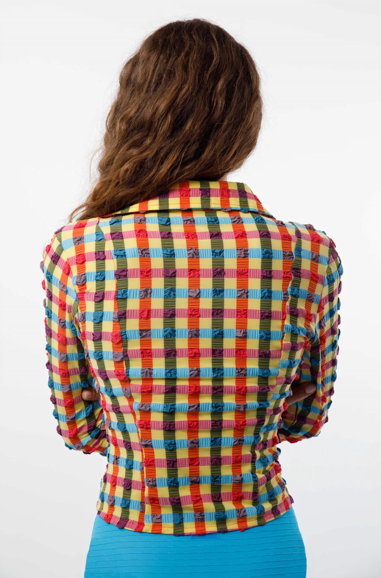 A classic button down shirt that will never go out of style. Introducing the Ella Shirt by Caro Luna, an essential addition to your spring wardrobe that transitions seamlessly from beachwear to party attire. Featuring a classic plaid and check pattern, this multi-colored button-down is designed with long sleeves and a collared neckline. Crafted from a durable blend of 88% polyamide and 12% elastane, this UV protective shirt is made in Spain and is quick drying for ultimate comfort. Closure: Button closure. Care: Hand wash with cold water using a detergent for delicate garments, avoiding fabric softeners.