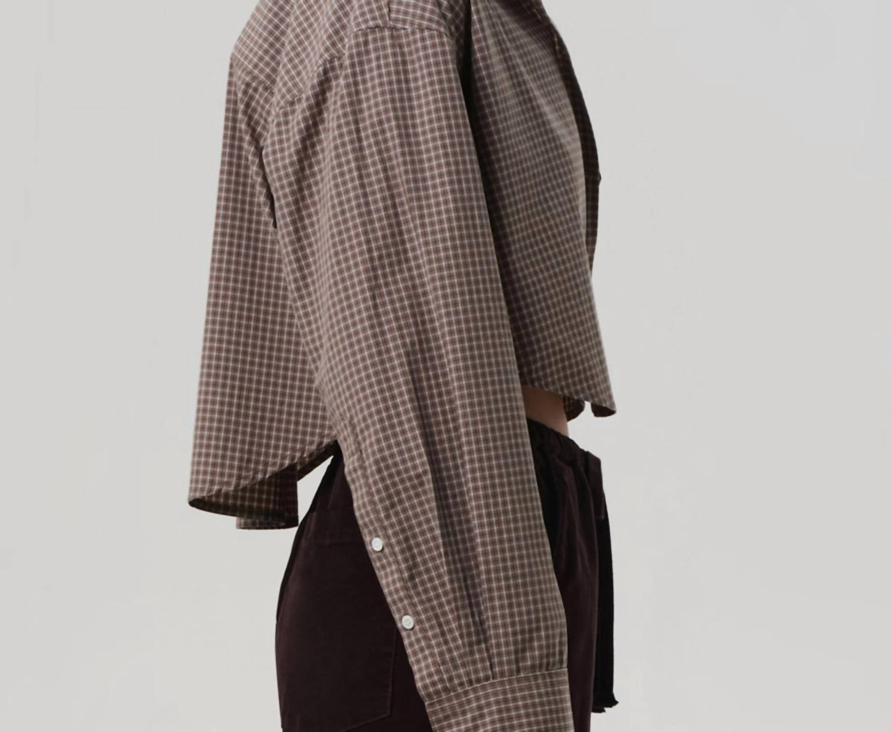 Perfectly tailored and soft to the touch. Elevate your holiday wardrobe with the Ana Cropped Shirt by Citizens of Humanity, a stylish piece in a rich brown plaid pattern perfect for Thanksgiving gatherings. Featuring long sleeves and crafted from pure cotton, this shirt embodies vintage charm with a classic collar and button closure. Care instructions include machine wash and tumble dry for easy maintenance. Ideal for a spring look or holiday party, this top ensures both comfort and style without pockets.