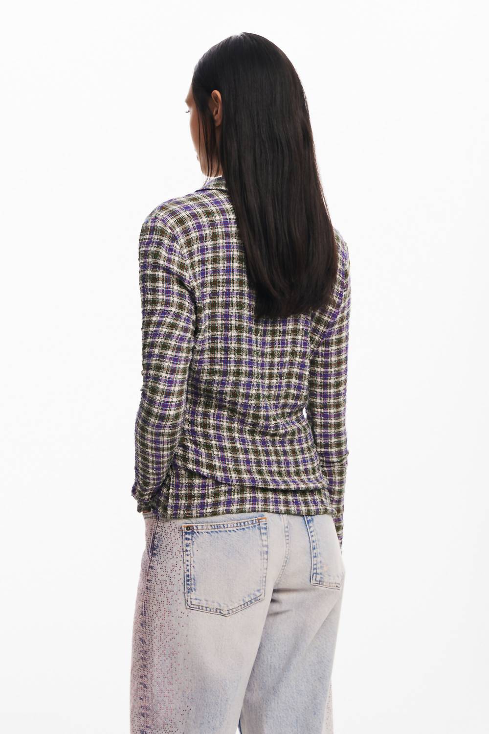 Perfectly tailored and soft to the touch. Introducing the Violeta Long Sleeve Button Down Shirt by Desigual, a chic piece meant to elevate your wardrobe with its purple patterned allure. This women's shirt boasts long sleeves and a classic collar neckline, exuding sophistication perfect for holiday parties or as part of your fall workwear collection. Crafted from a viscose blend of 87% viscose, 12% polyester, and 1% elastane, it offers a comfortable silhouette. Care for this piece by hand washing and line drying to maintain its vibrant style season after season.