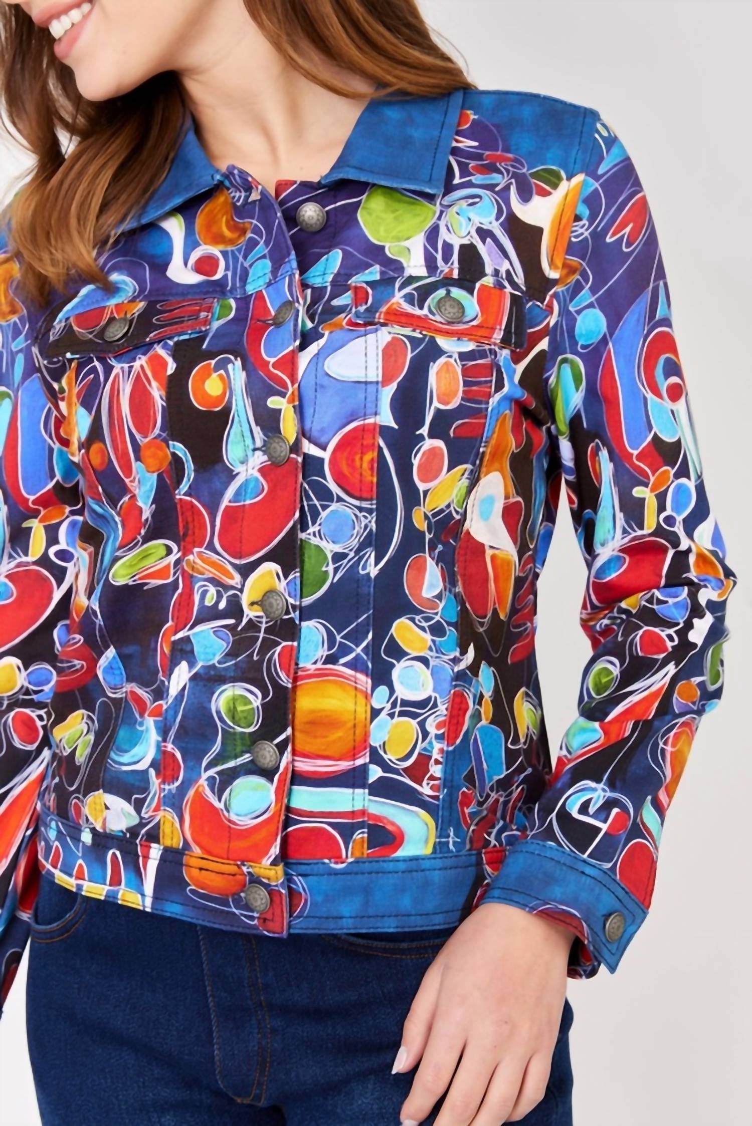 A classic button down shirt that will never go out of style. Elevate your style with the Dolcezza Nathalie Gribinski Button Down Henley Top in Blue Multi, featuring a lively patterned motif. This women's shirt boasts long sleeves and a comfortable 75% Cotton, 15% Polyester, 10% Elastane blend. Designed with a 27-inch garment length and a classic collar, it offers a structured fit perfect for layering. Closure type: Button closure. Care: Hand wash.