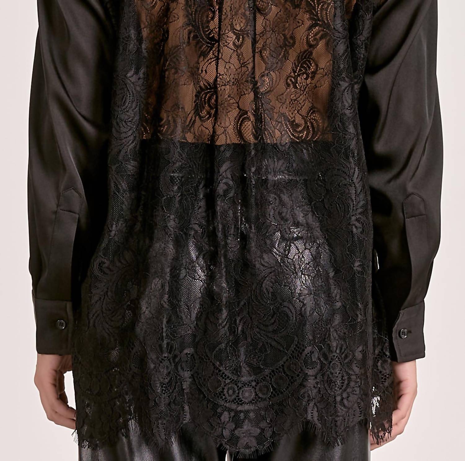 Perfectly tailored and soft to the touch. Introducing the Button-down Lace Back Top by ELAN, a sophisticated piece that blends a classic front with a stunning lace-detailed back. This long sleeve shirt in sleek black features a button closure and is crafted from luxurious satin. Perfect for women seeking a versatile addition to their wardrobe, it transitions effortlessly from workwear to evening charm. Care for this piece by hand washing in cold water and line drying to maintain its delicate allure.