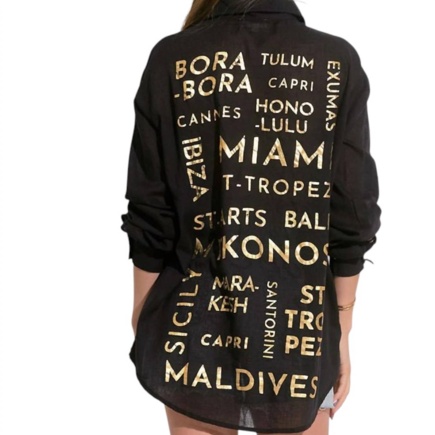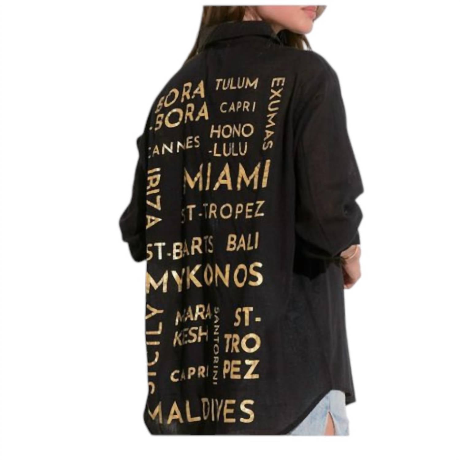 This button down shirt is comfortable yet polished. Introducing the Button Down Print Top by ELAN, a sophisticated addition to your summer wardrobe with its graphic pattern and classic black hue. It features long sleeves and a structured collar, making it ideal for workwear or a holiday party. Crafted from 100% linen, this top employs a button closure for easy wear. Care for it with a hand wash and line dry to maintain its quality.