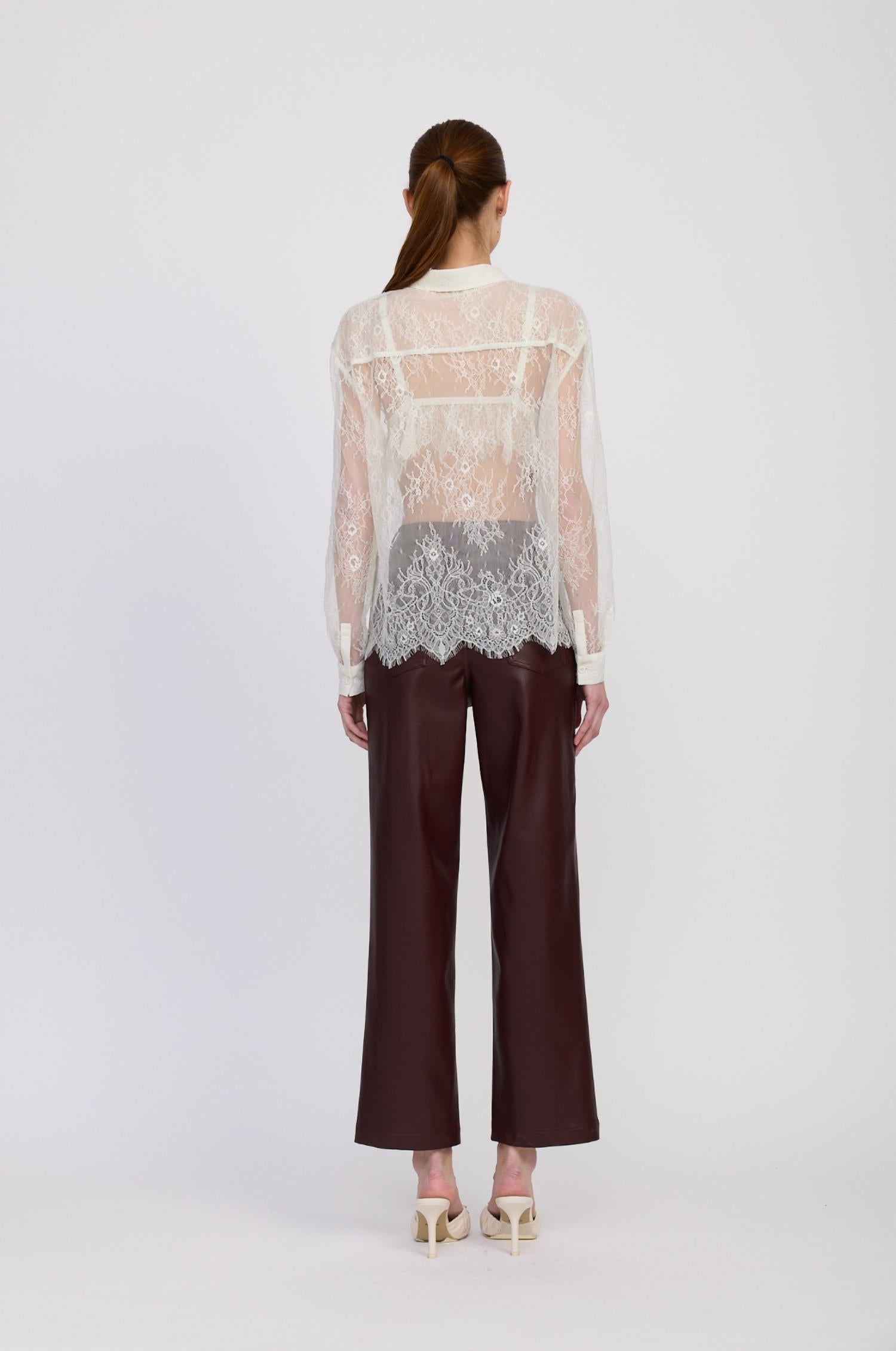 Perfectly tailored and soft to the touch. Introducing the Alannah Top & Bralette Set by En Saison, a romantic and refined addition to your wardrobe in a soft ivory hue. This women's set features a long sleeve sheer blouse with a textured pattern and billowed sleeves, along with a flattering tie-front and button closure. Crafted from an 88% Nylon, 12% Spandex blend, it offers comfort and flexibility. Care: Hand wash cold, line dry. The model is 5'9" and wearing a size small.