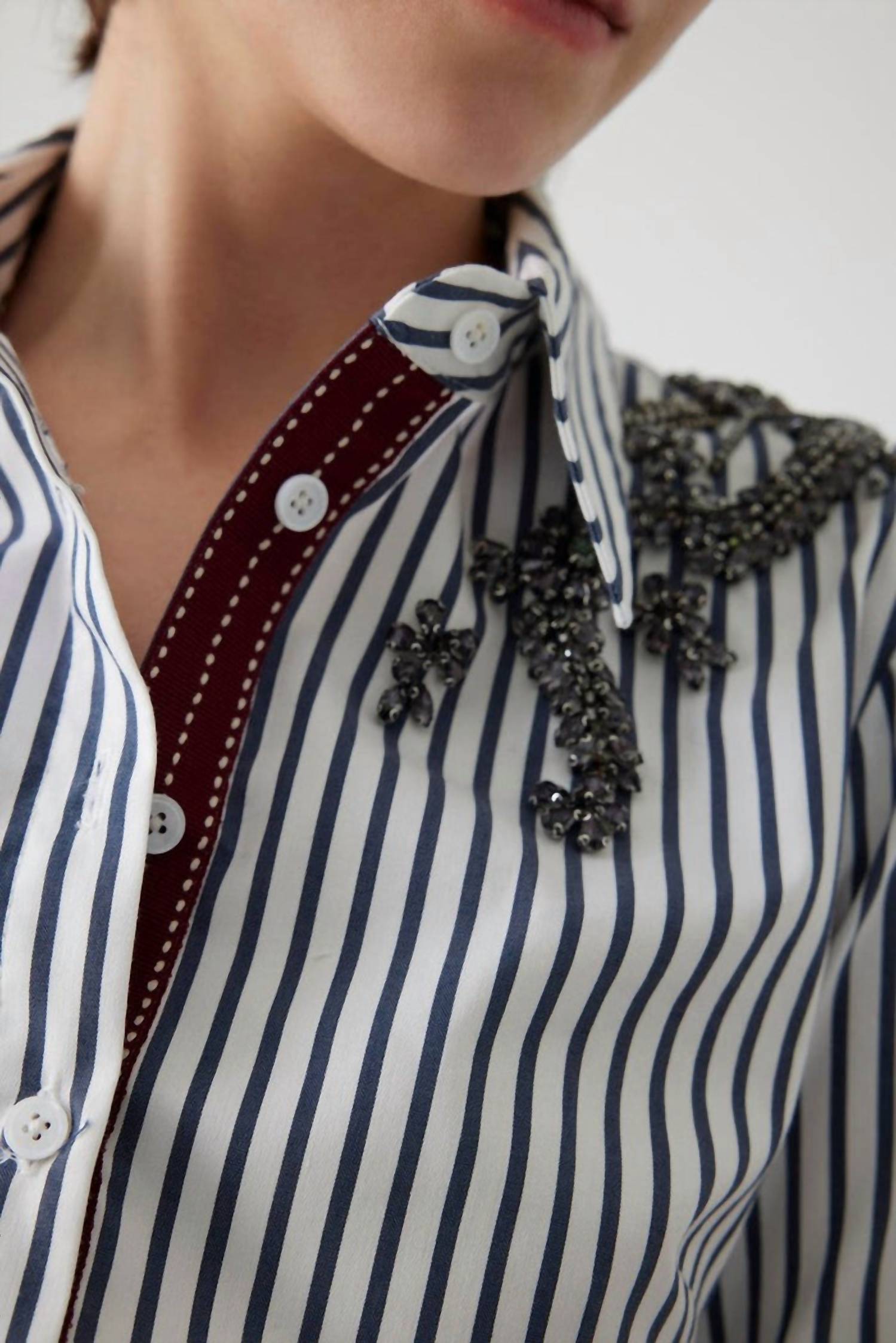 A classic button down shirt that will never go out of style. Elevate your wardrobe with the Slim Fit Striped Shirt by EXQUISE, a sophisticated blend of timeless style and modern flair. With long sleeves and a classic collar, this shirt's flattering fit is enhanced by its button-front closure. Made from a premium cotton blend, it offers comfort for all-day wear. The versatile design, in an elegant blue and white stripe pattern, and subtle embroidered details make it perfect for a variety of occasions, from business meetings to holiday gatherings. Care: Machine wash cold, tumble dry low, iron on low if needed.