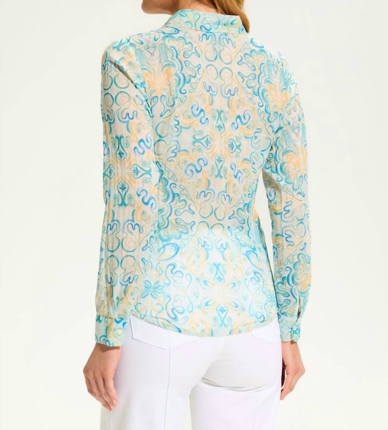 This button down shirt is comfortable yet polished. Elevate your spring wardrobe with the Crinkle Printed Button Down Shirt by FDJ, tailored for women in a vibrant Kaleidoscope pattern. It boasts long sleeves and a classic collar, crafted from durable polyester. Closure: Button closure. Perfect for a holiday party, this playful piece is essential for those seeking style and sophistication.