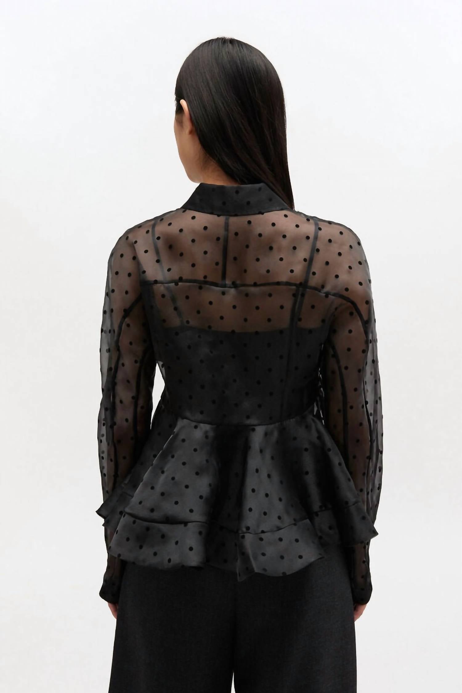 Ganni - Flocked Organza Peplum Shirt