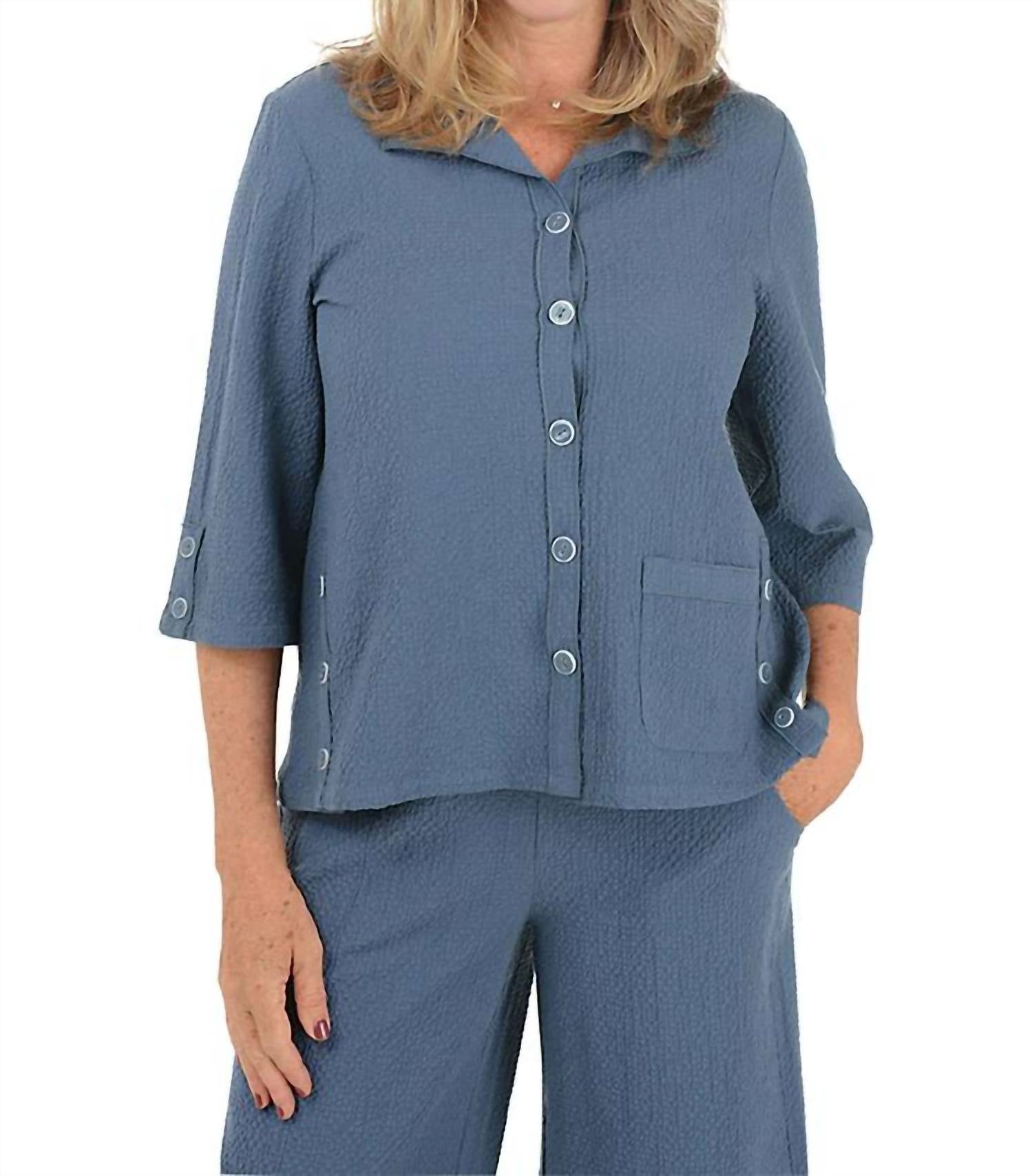 Perfectly tailored and soft to the touch. Introducing the Crinkle Camp Shirt by Habitat, an indigo-hued essential perfect for any travel wardrobe. This long-sleeve shirt is crafted from a blend of 68% Rayon, 30% Polyester, and 2% Spandex, ensuring comfort and style. The button closure and fold-over collar create a classic look, enhanced by the textured fabric and center back pleat for a relaxed fit. Care is a breeze with machine wash cold instructions, and it features convenient pockets for added functionality.