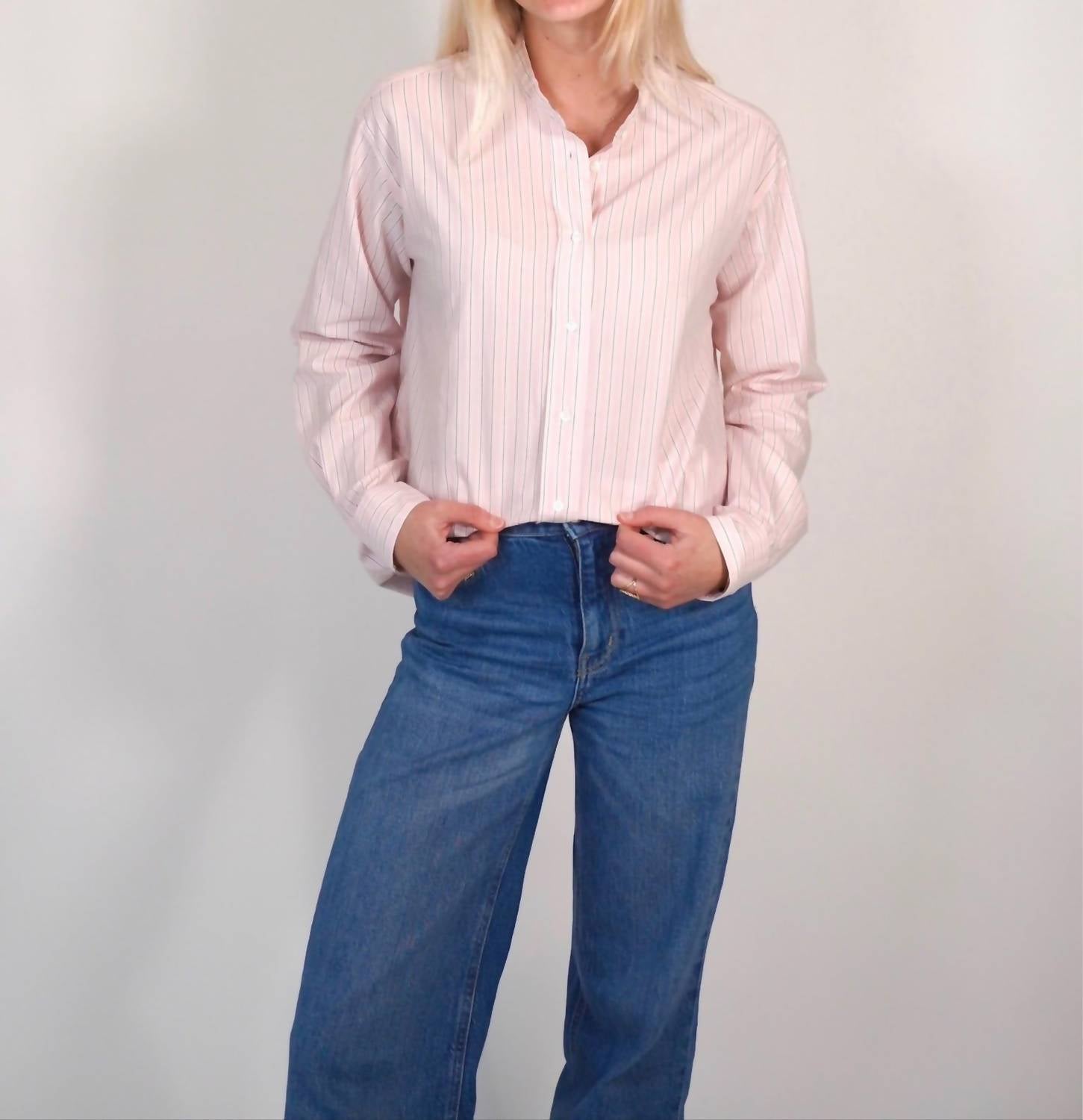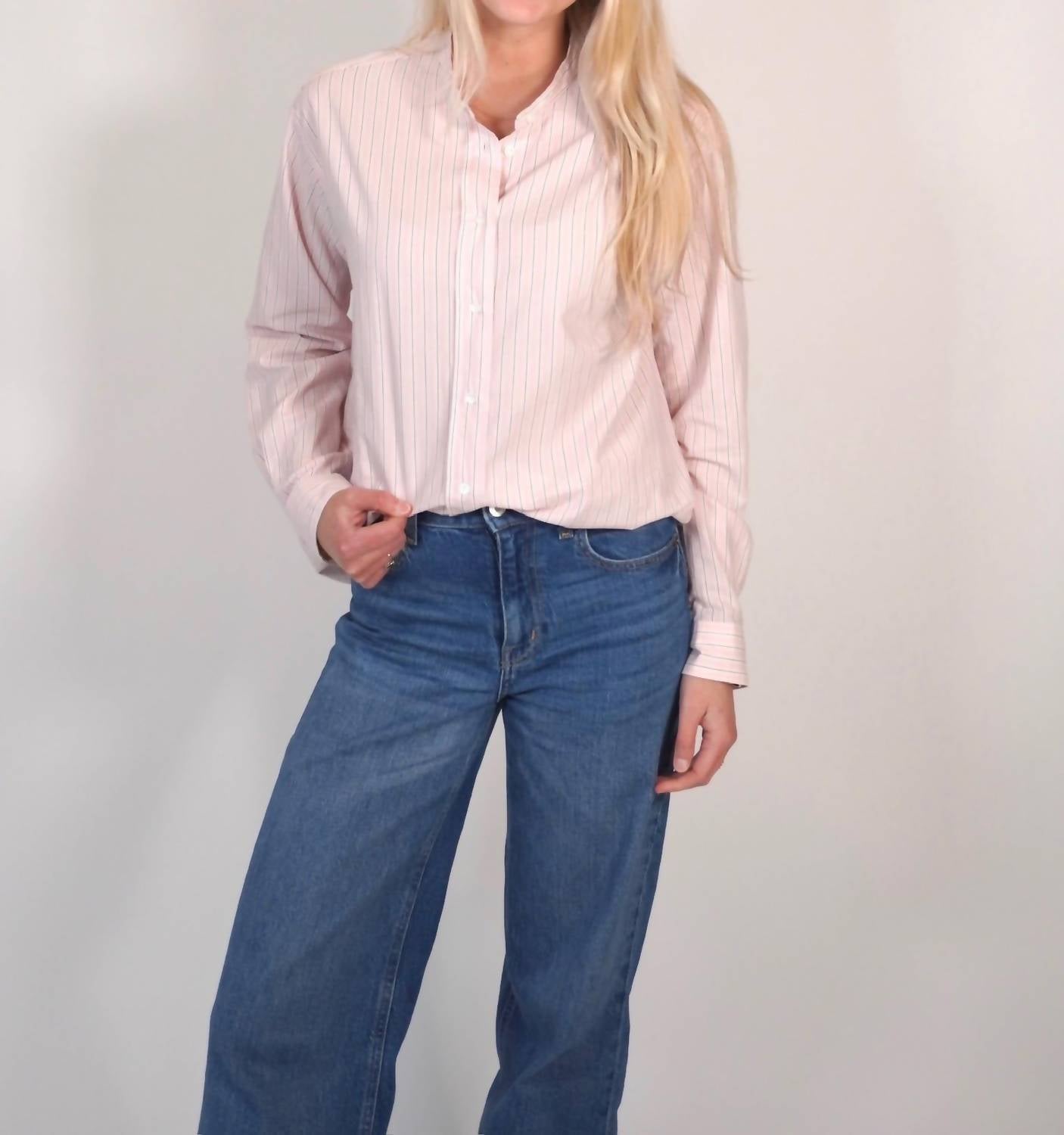 Experience the Cristal Woven Shirt by Hartford, a stylish button-down for women that's perfect for fall and Thanksgiving celebrations. With its long sleeves and classic collar, this pink-striped shirt offers a sophisticated workwear vibe, ideal for engagements and special occasions. Featuring a button closure for easy wear, it brings effortless elegance to your wardrobe.