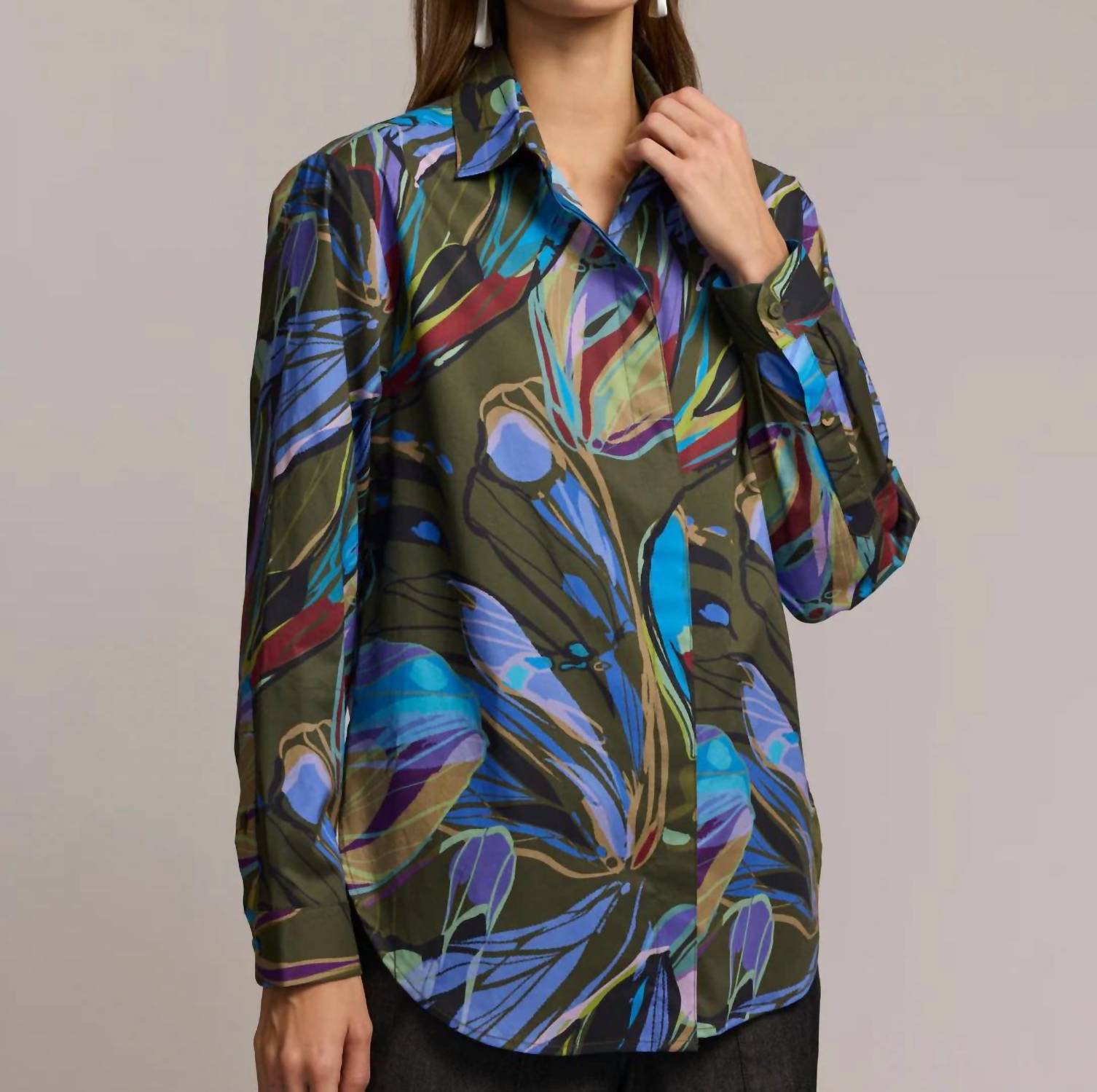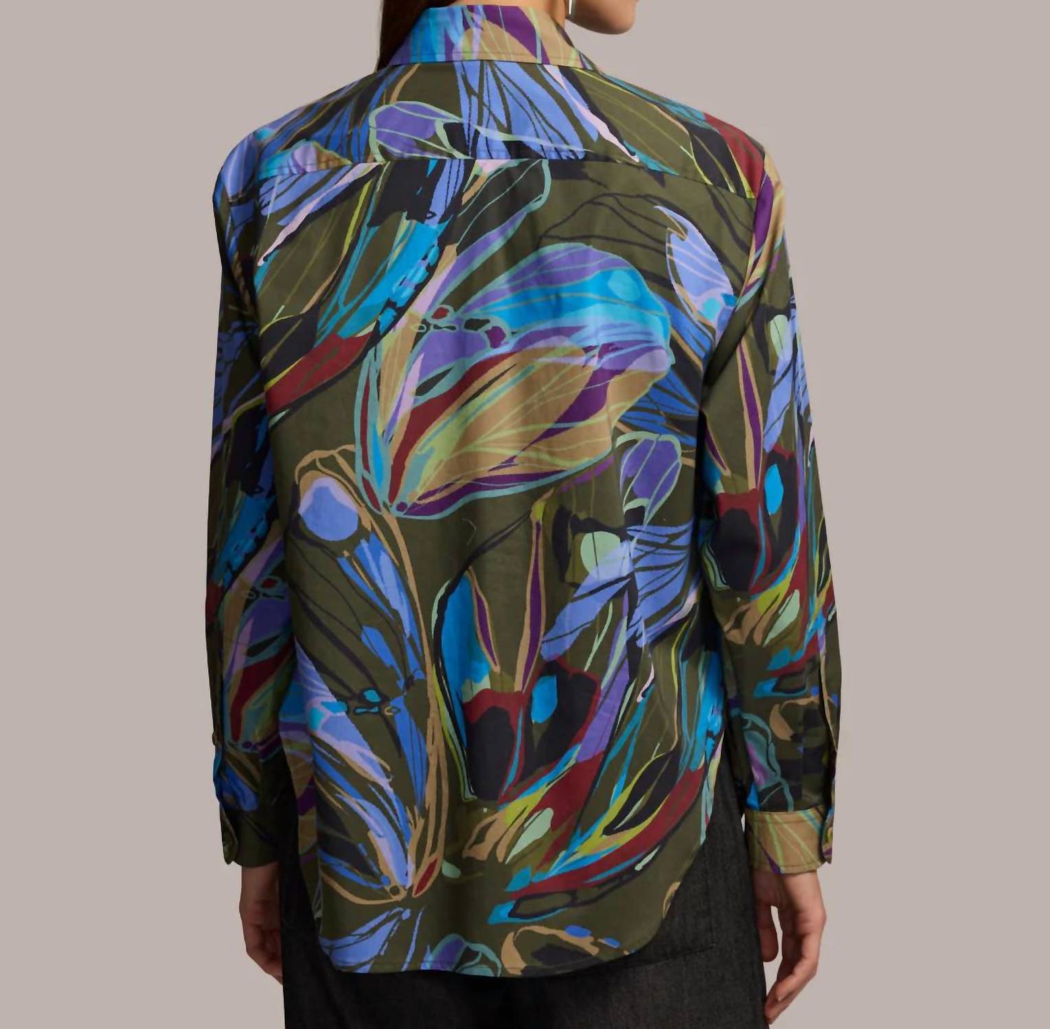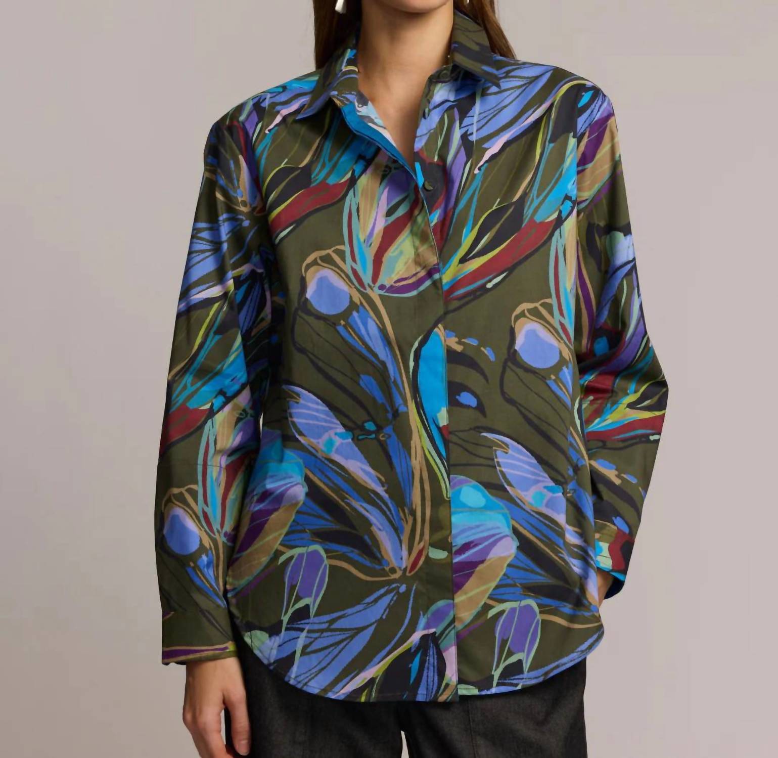 Perfectly tailored and soft to the touch. Introducing the Halsey Long Sleeve Abstract Shirt by Hinson Wu, perfect for a dinner party with its boho chic appeal. This long sleeve top features a point collar with a slight drop shoulder styling and buttoned cuffs. Crafted from a premium blend of 96% Cotton and 4% Spandex, this patterned shirt is proudly made in Indonesia. Closure is secured with buttons, and it is easy to care for with machine wash and dry instructions, though dry cleaning is also an option.