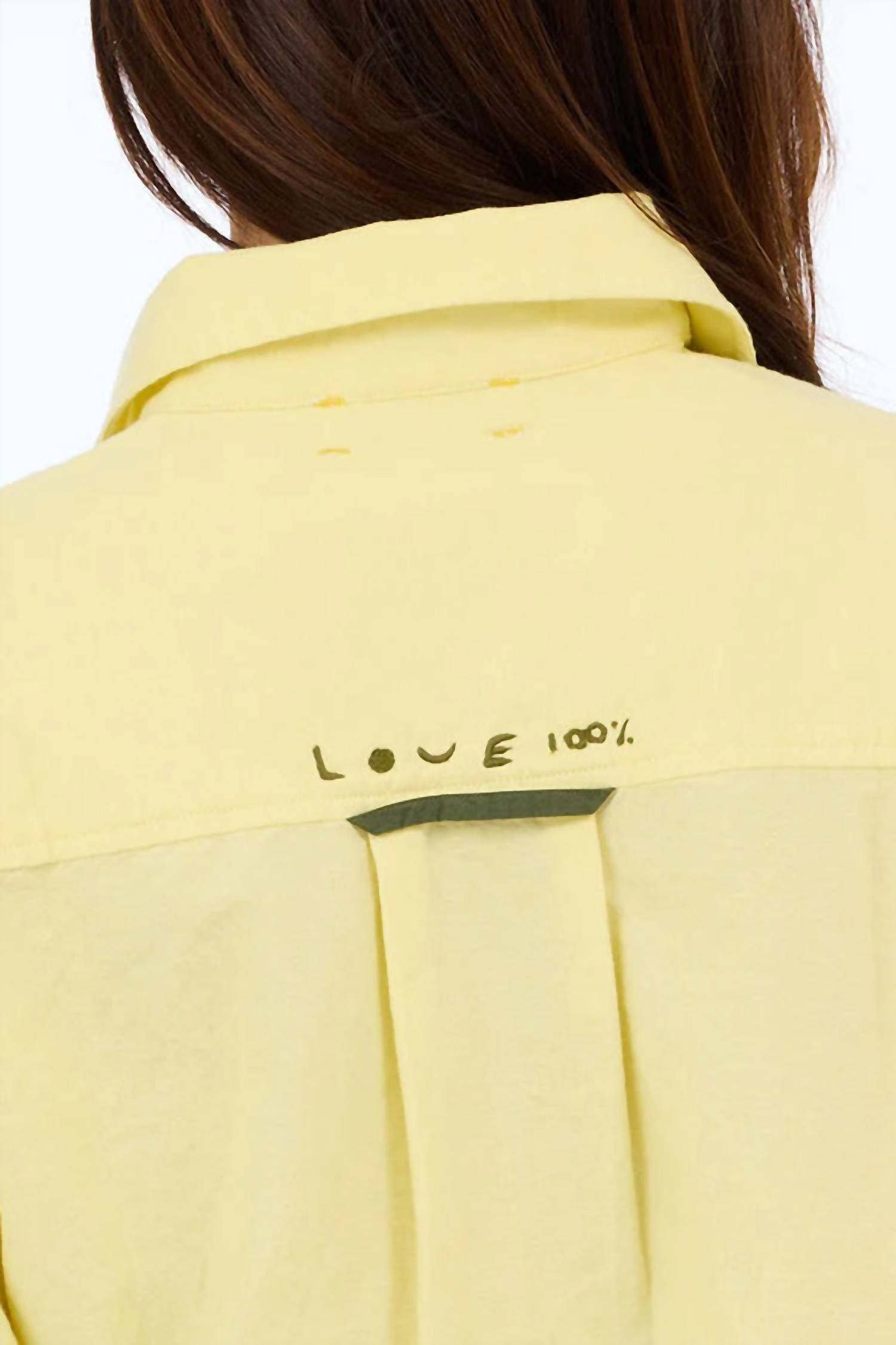 A classic button down shirt that will never go out of style. Introducing the Jack Shirt by KERRI ROSENTHAL, crafted in soft oxford cotton for a laid-back yet refined look. This stylish button-down features long sleeves with button cuffs and a rounded high-low hem, accented by army green embroidery with delightful details like a small heart on the chest. The shirt promises a relaxed fit with an extra button at the left for a cinched-in appearance. Made in India and measuring 30" in length for a size small, the garment is composed of 100% cotton and is machine washable, making it as practical as it is chic.
