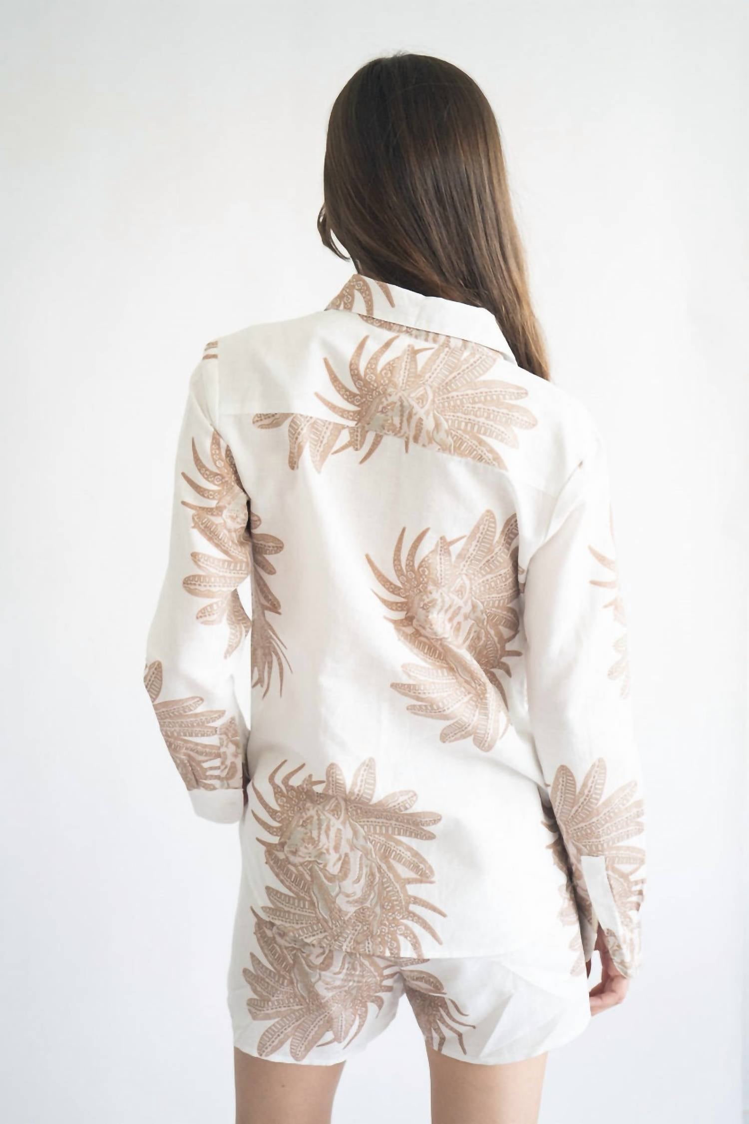 Perfectly tailored and soft to the touch. The Comfortable Button-down Shirt by Las Sureñas is a stylish choice for women seeking a versatile and patterned look. This long sleeve shirt crafted from a linen blend offers a breathable fit perfect for spring travel and Easter celebrations. Closure: Button closure. Care: Machine wash. Embrace the maximalist trend with this white, collar neck piece that effortlessly complements your wardrobe.