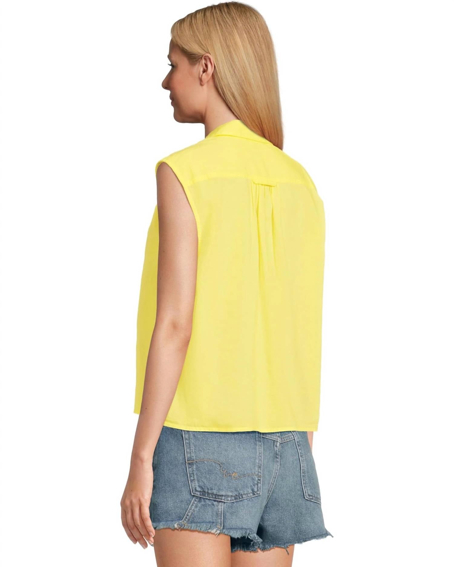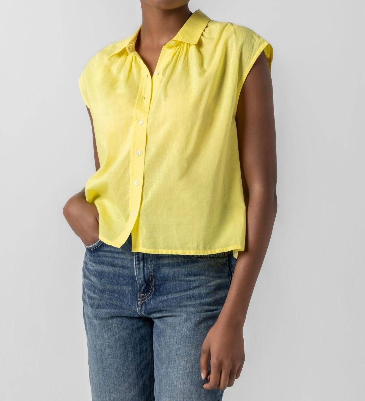 This button down shirt is comfortable yet polished. Enhance your spring wardrobe with the Short Sleeve Button Down Shirt by Lilla P, a perfect blend of athleisure style and vacation-ready comfort. This cap sleeve top in a vibrant lemon color brings a relaxed yet polished look with its solid pattern and classic collar neckline. It features a convenient button closure and is thoughtfully designed without pockets for a sleek silhouette. Care for this summer essential by hand washing and line drying, ensuring it stays a versatile staple for seasons to come.