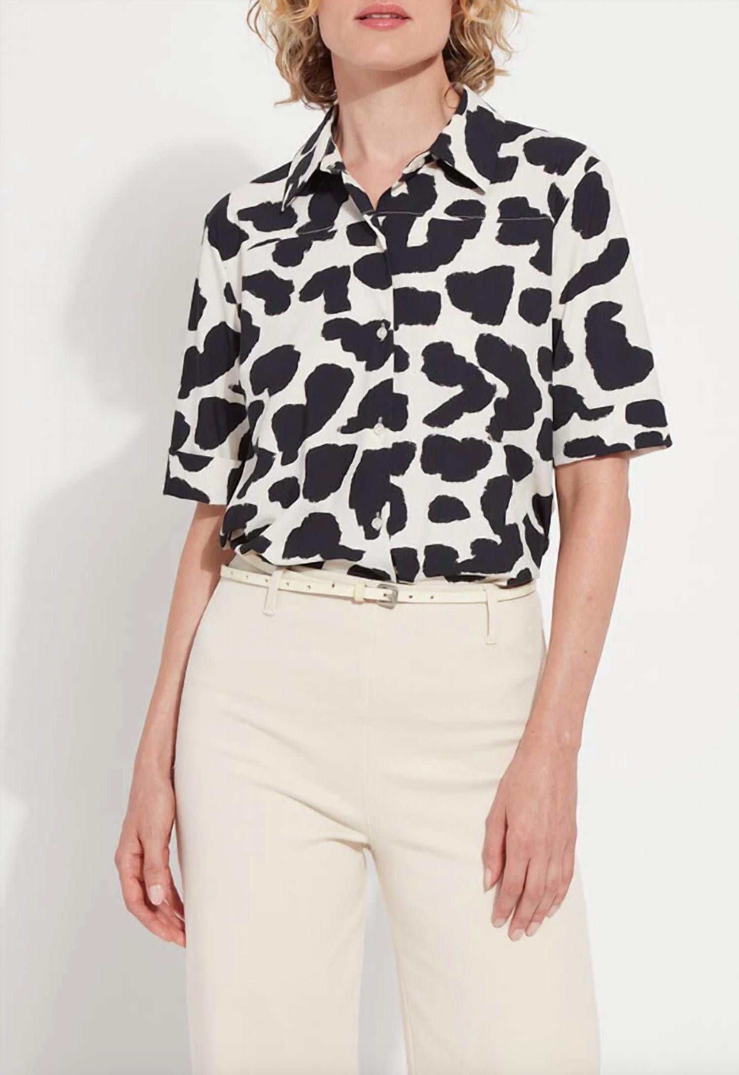 Lysse - Women's Printed Josie Short Sleeve Button Down Shirt