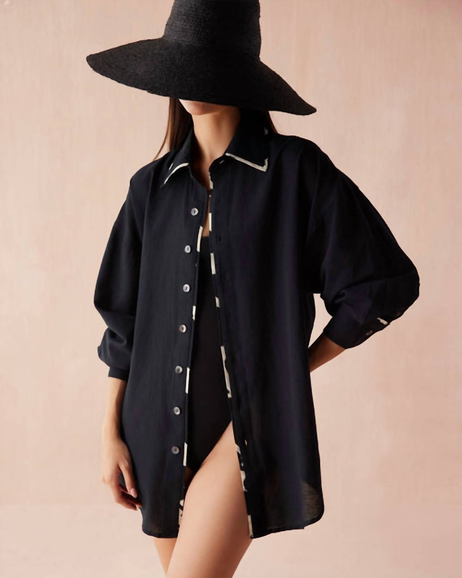 A classic button down shirt that will never go out of style. Introducing the Callista Button Down Shirt by OMIKA, a stylish addition to your wardrobe in the sophisticated Solid Mussel print. This women's blouse features a classic collar and three-quarter sleeves, crafted from a comfortable cotton blend. Designed with a 30-inch garment length, the shirt is ideal for holiday parties and spring events, showcasing a minimalist trend that suits any occasion. Closure: Button. Care instructions: Machine wash, line dry.