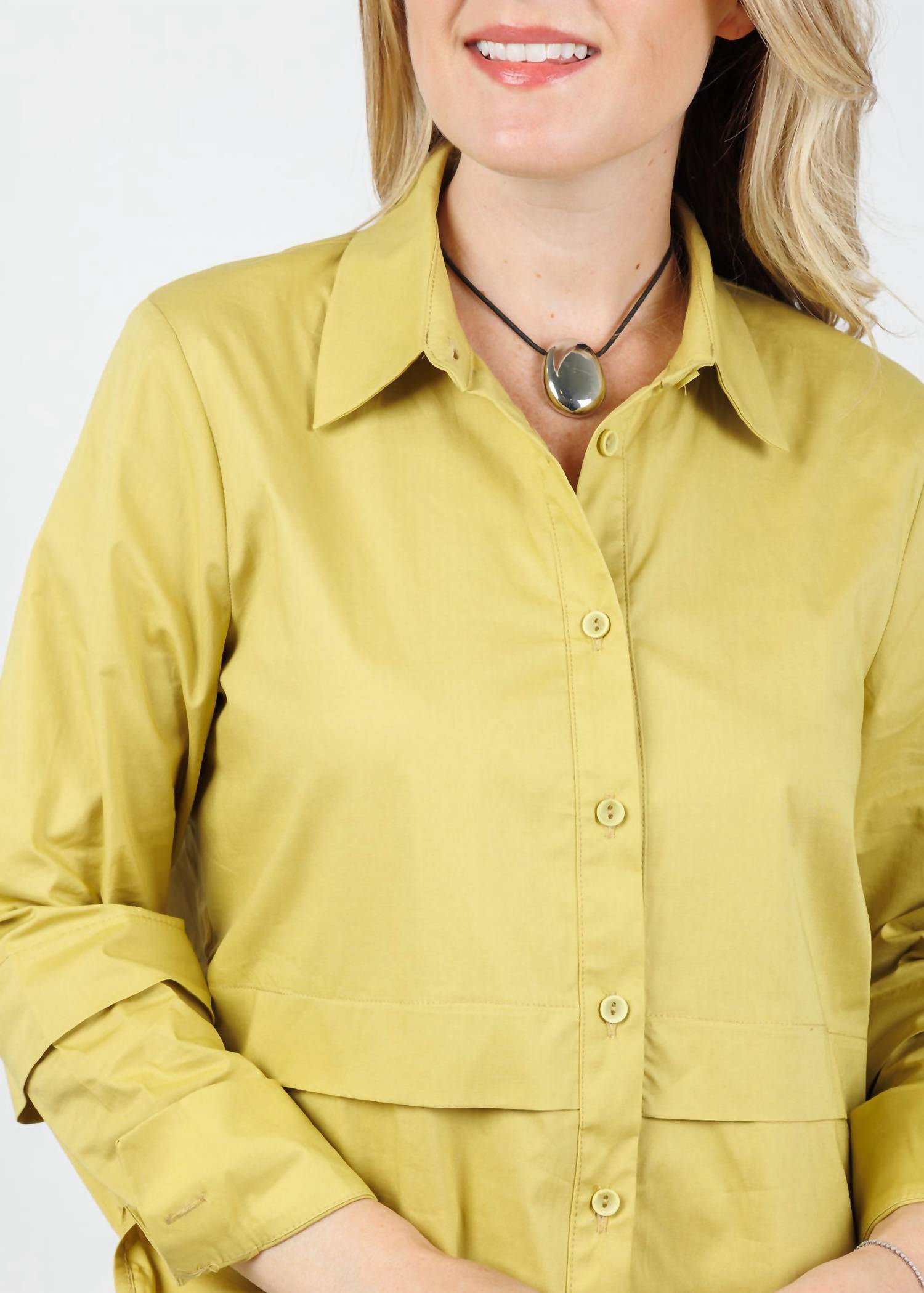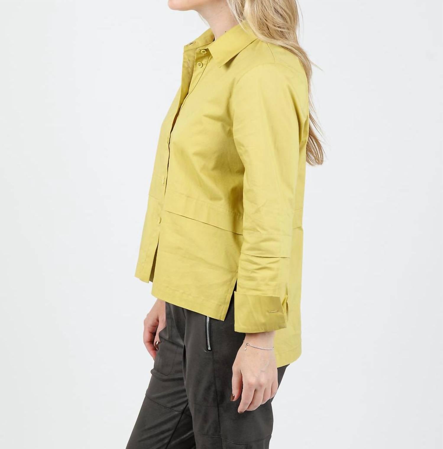 A classic button down shirt that will never go out of style. Elevate your wardrobe with the Ozai N Ku Nadia Button-down High-low Shirt in a vibrant lemon hue, perfect for a modern and sophisticated look. This piece boasts long sleeves with cuffs and a chic high-low hem, crafted from a crisp 97% cotton and 3% spandex blend for added comfort and style. Featuring a collared neckline and a button-front closure, this shirt is ideal for versatile styling from work to weekend. Care is simple with machine wash instructions, making it a practical yet elegant addition to your collection.