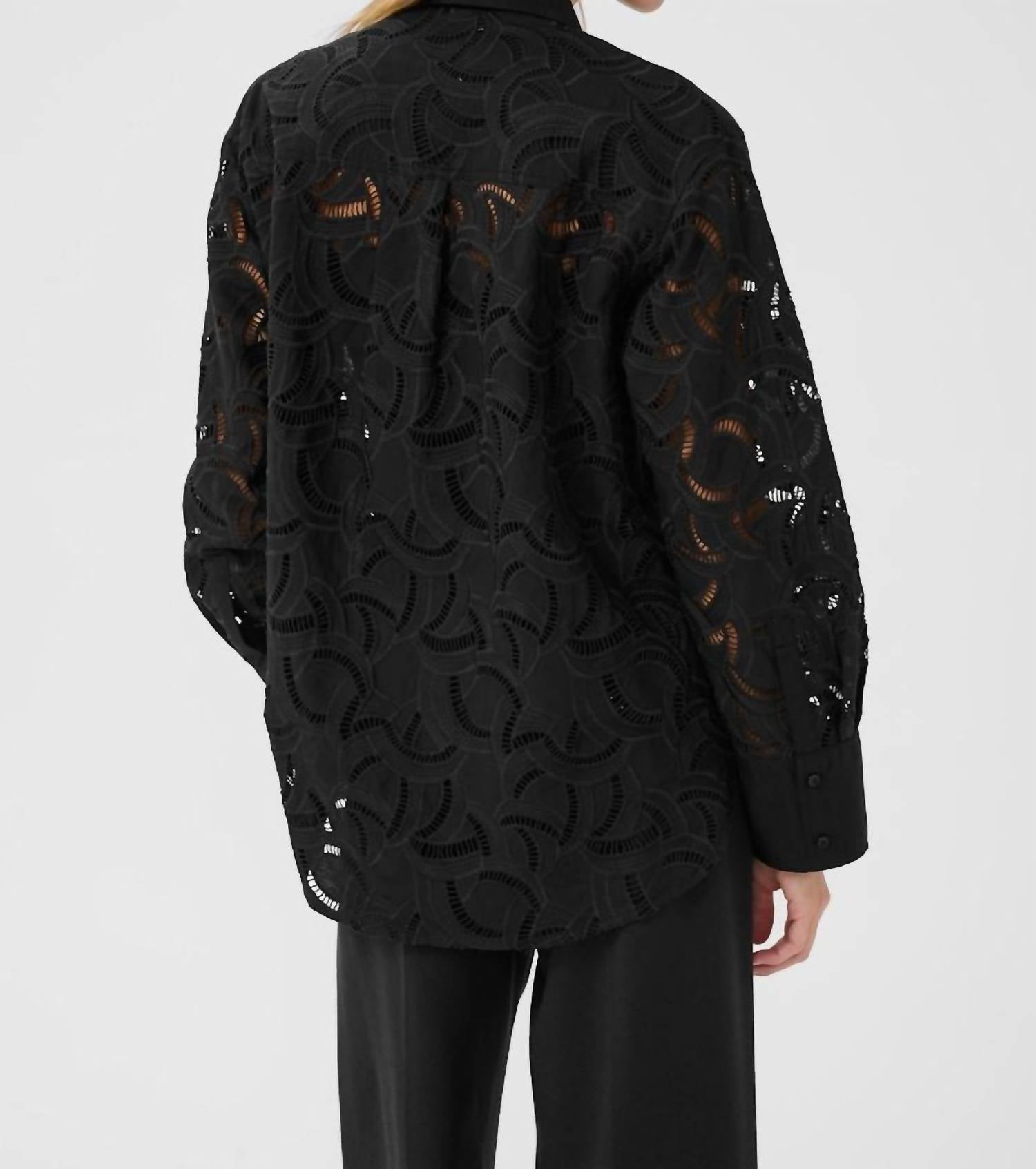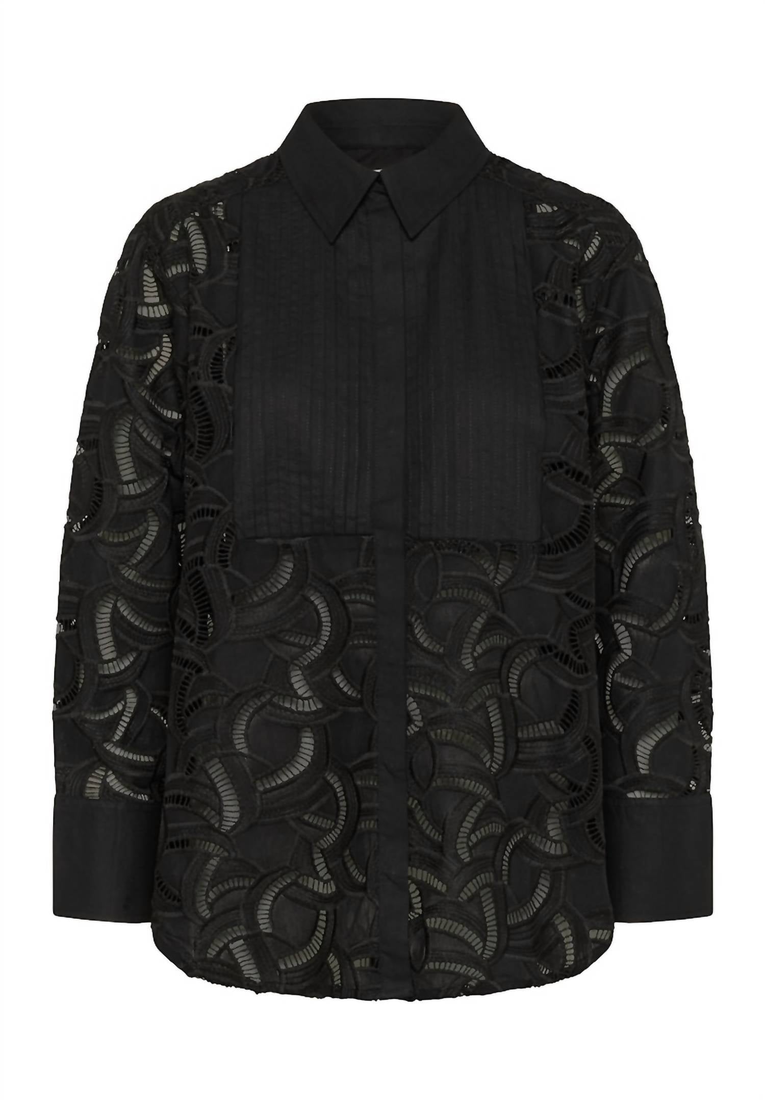 A classic button down shirt that will never go out of style. Discover the Sigbrit Shirt by Part Two, a chic and sophisticated addition to your wardrobe. This black, patterned shirt features long sleeves and a classic collar, offering a relaxed fit that exudes elegance. The fabric is a 50% cotton, 50% polyester blend, with a pleated front and sheer look—ideal for both professional and evening settings.