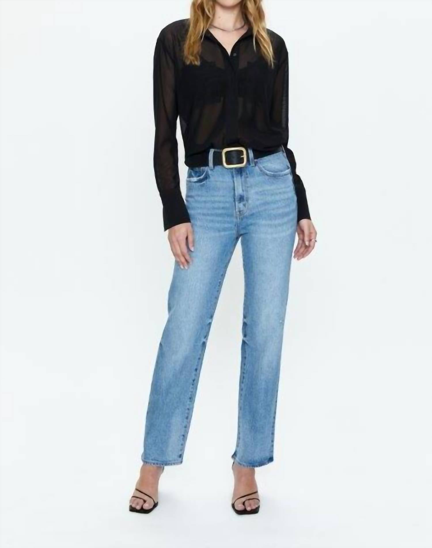 A classic button down shirt that will never go out of style. Experience the elegance of the Celine Long Sleeve Button Down Shirt by PISTOLA, designed for sophisticated minimalist style. With its noir hue and impeccable collar neckline, this shirt is crafted from polyester for a sleek look and features a garment length of 26 inches. Closure type includes a classic button closure, perfect for holiday parties this spring. Please note that care instructions are not provided.